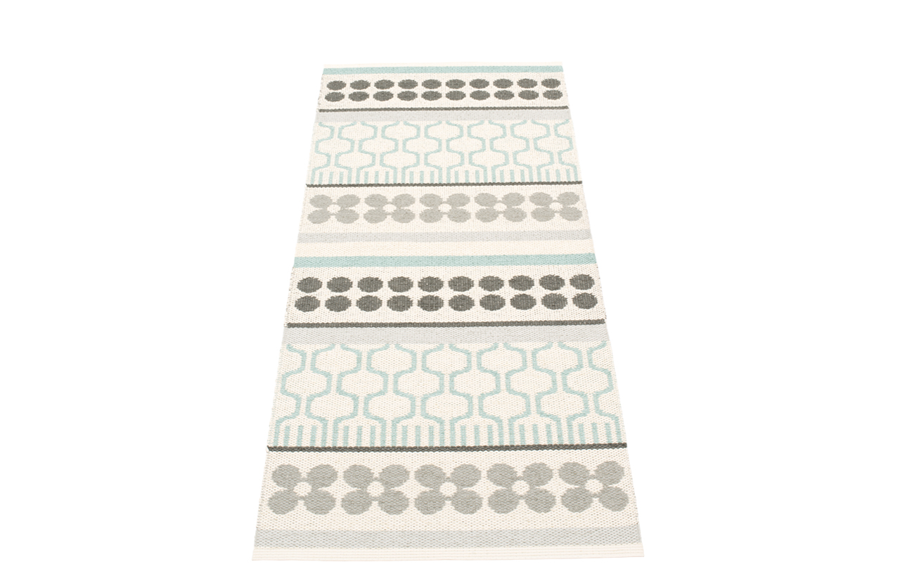 „Pappelina“ kilimus galite valyti šluoste, plauti rankomis ar skalbti skalbimo mašinoje, ne šiltesniame nei 30 laipsnių temperatūros vandenyje (negręžkite ir nedžiovinkite džiovyklėje). Stipriai ištempkite, kol kilimas drėgnas, kad atkurtumėte formą, leiskite nuvarvėti vandeniui ir išdžiovinkite. Būkite atsargūs su kraštais. Nešvarumus nuplaukite, netrinkite.| Medžiagiškumas: | minkštas, netoksiškas plastikas |