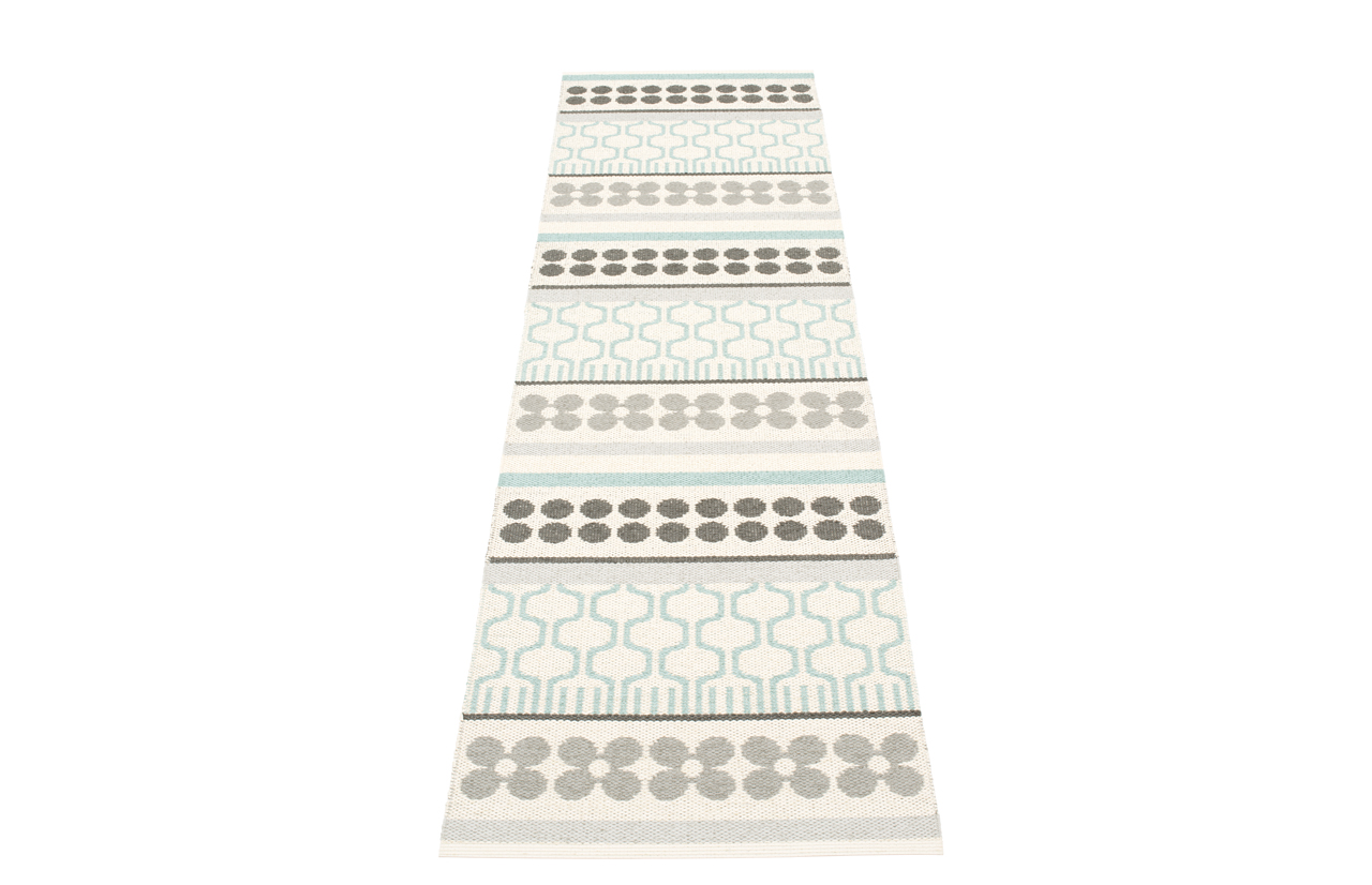 „Pappelina“ kilimus galite valyti šluoste, plauti rankomis ar skalbti skalbimo mašinoje, ne šiltesniame nei 30 laipsnių temperatūros vandenyje (negręžkite ir nedžiovinkite džiovyklėje). Stipriai ištempkite, kol kilimas drėgnas, kad atkurtumėte formą, leiskite nuvarvėti vandeniui ir išdžiovinkite. Būkite atsargūs su kraštais. Nešvarumus nuplaukite, netrinkite.| Medžiagiškumas: | minkštas, netoksiškas plastikas |