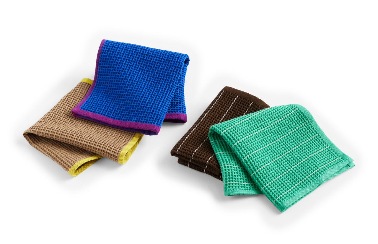 Trijų dimensijų, žaismingai vafline vadinama tekstilė – nepamainoma kasdienėje ruošoje. Ji ypač efektyviai sugeria drėgme, greitai džiūsta ir ilgai išlaiko pirminę išvaizdą. O CANTEEN rankšluostėlių serija iš HAY pasižymi dar ir nuostabiu dizainu: elegantiškomis juostelėmis šiuolaikiškų spalvų sūkuryje. Tebūnie jūsų namų virtuvėje gera ir gražu!