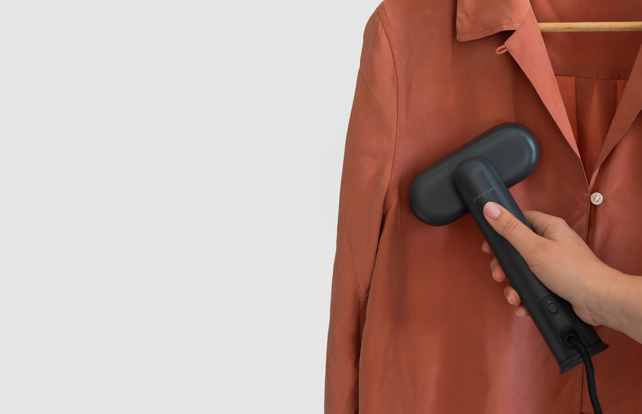 Steamery CIRRUS LITE Travel – kompaktiškas drabužių garintuvas, sukurtas sutalpinti į lagaminą ir puikiai tinkantis kelionėms bei greitam drabužių atnaujinimui.