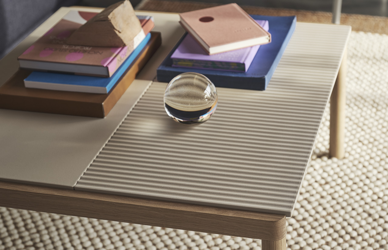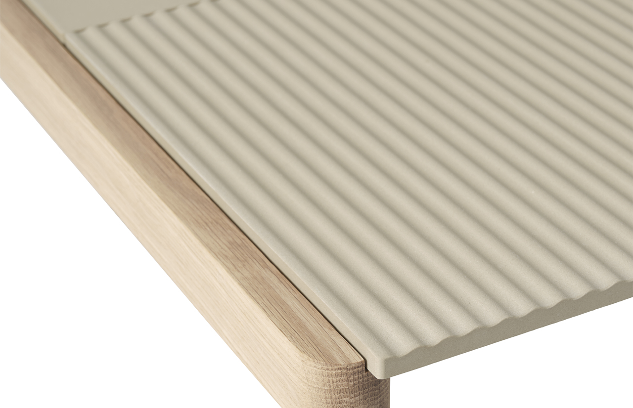 Įkvėptas tradicinio stalelio, plytelėmis dengtu stalviršiu, COUPLE kavos stalelis alsuoja šiuolaikiškumu bei nuosaikia elegancija. Stalelio dizainas vienija dvi skirtingas, tačiau natūralios kilmės medžiagas: FSC™ sertifikuotą ąžuolo medieną bei akmens masės keramiką. „Mane visuomet žavėjo įvairi medžiagų tekstūra, todėl aš jau seniai norėjau sukurti gaminį, kurio paviršius dovanotų keramikai būdingą šiurkštumą", – savo viziją paaiškina dizaineris Sylvain Willenz. COUPLE dizainas leidžia rinktis ir tarpusavyje derinti dviejų tipų keramikinius stalviršius: švelniu, lygiu paviršiumi bei dekoruotą subtiliomis bangelėmis. Siūlomi net 36 skirtingi variantai, padeda išsirinkti tinkamiausio dydžio, spalvos bei apdailos COUPLE kavos stalelis.