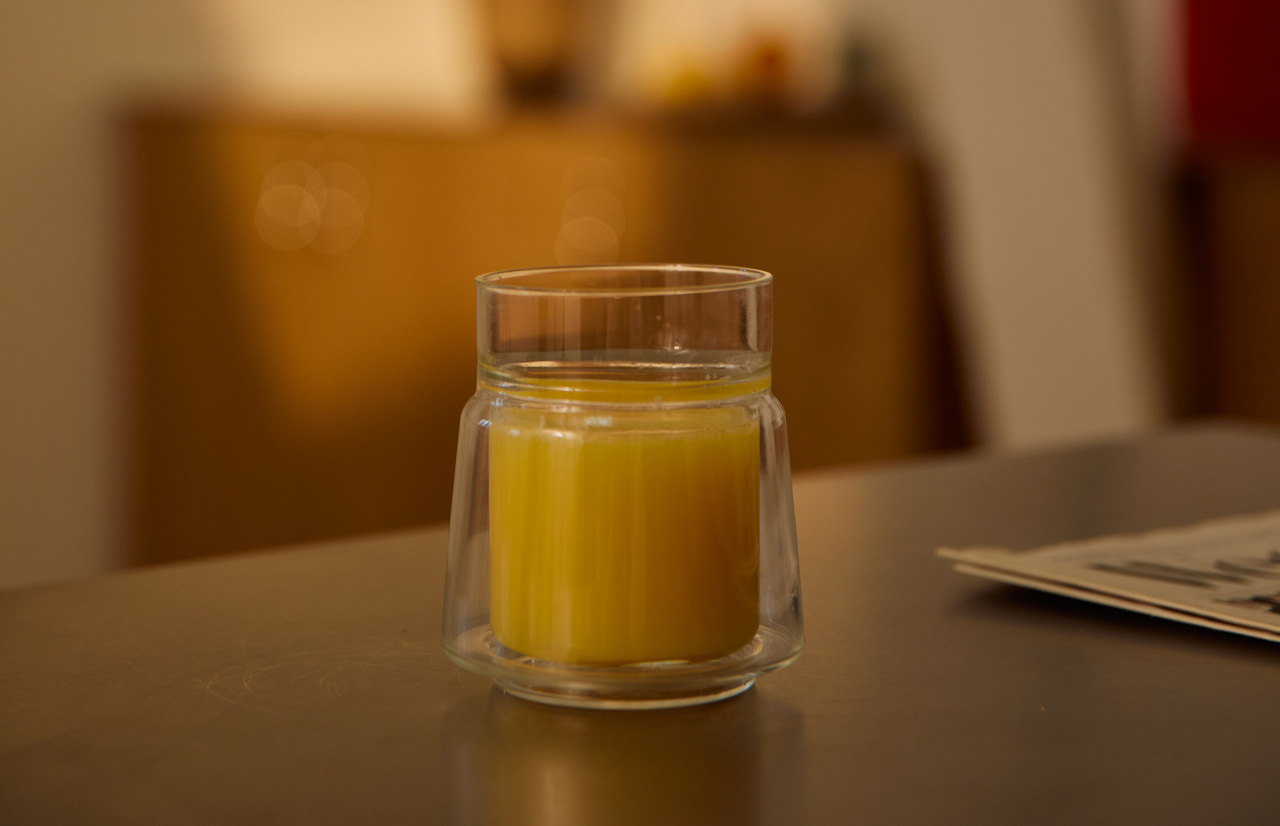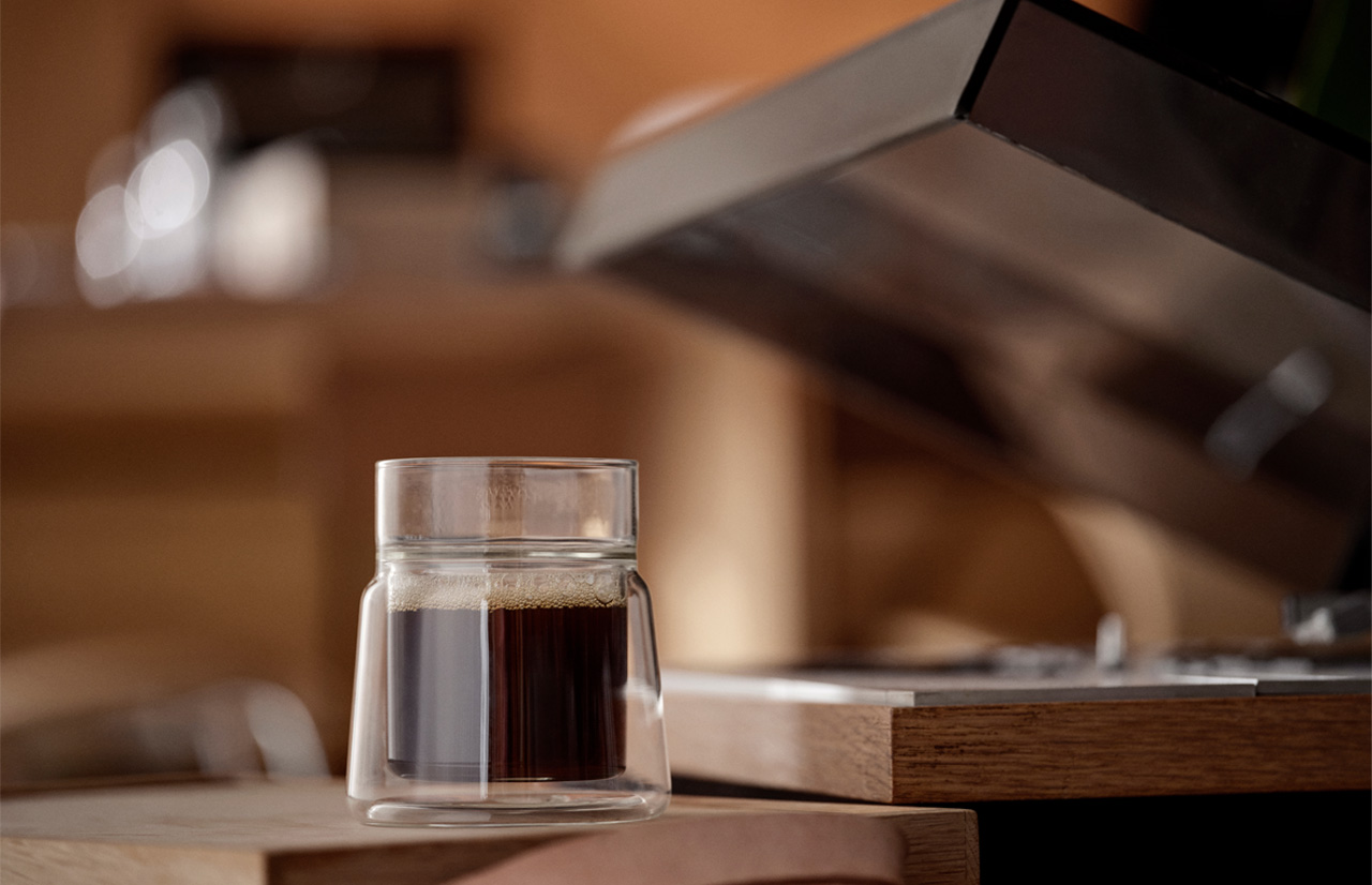 Dvigubas stiklinės korpusas saugo pirštus nuo karščio