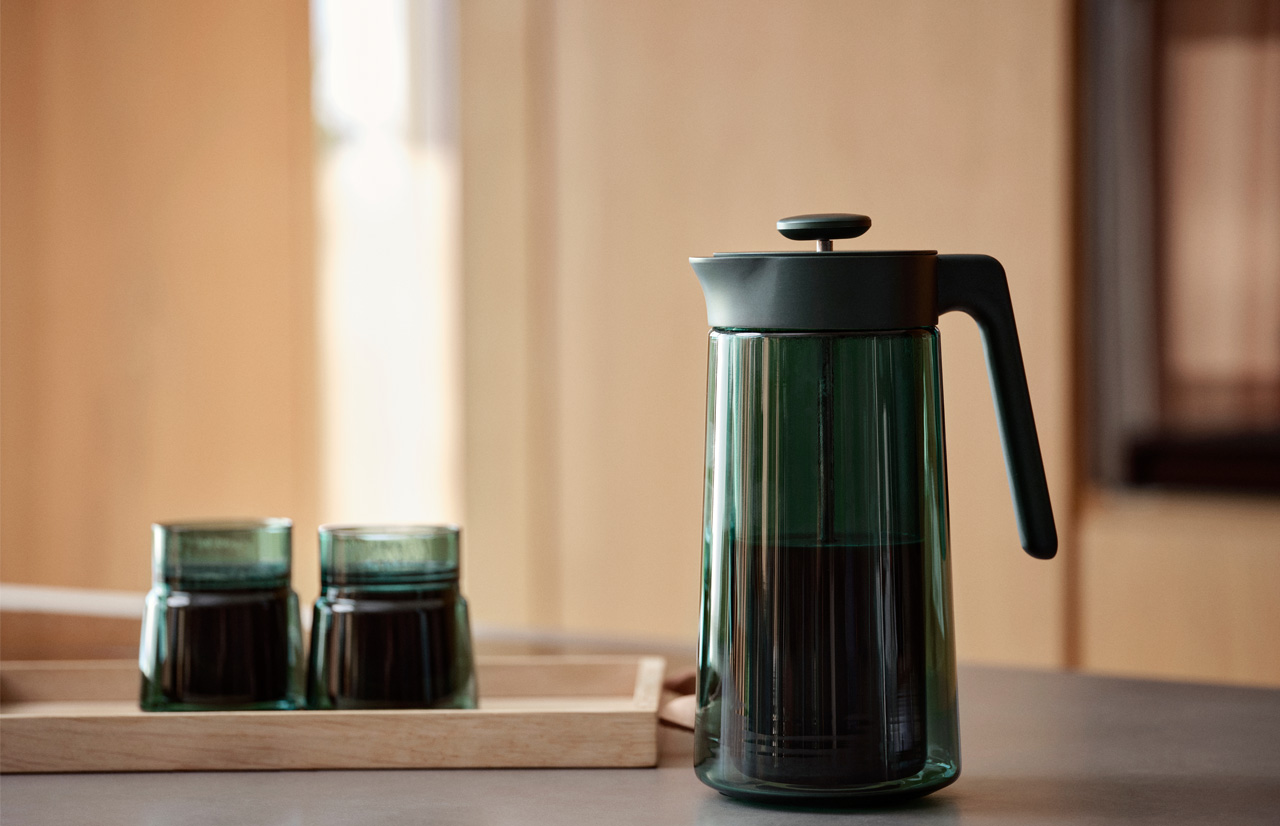 Dvigubas stiklinės korpusas saugo pirštus nuo karščio