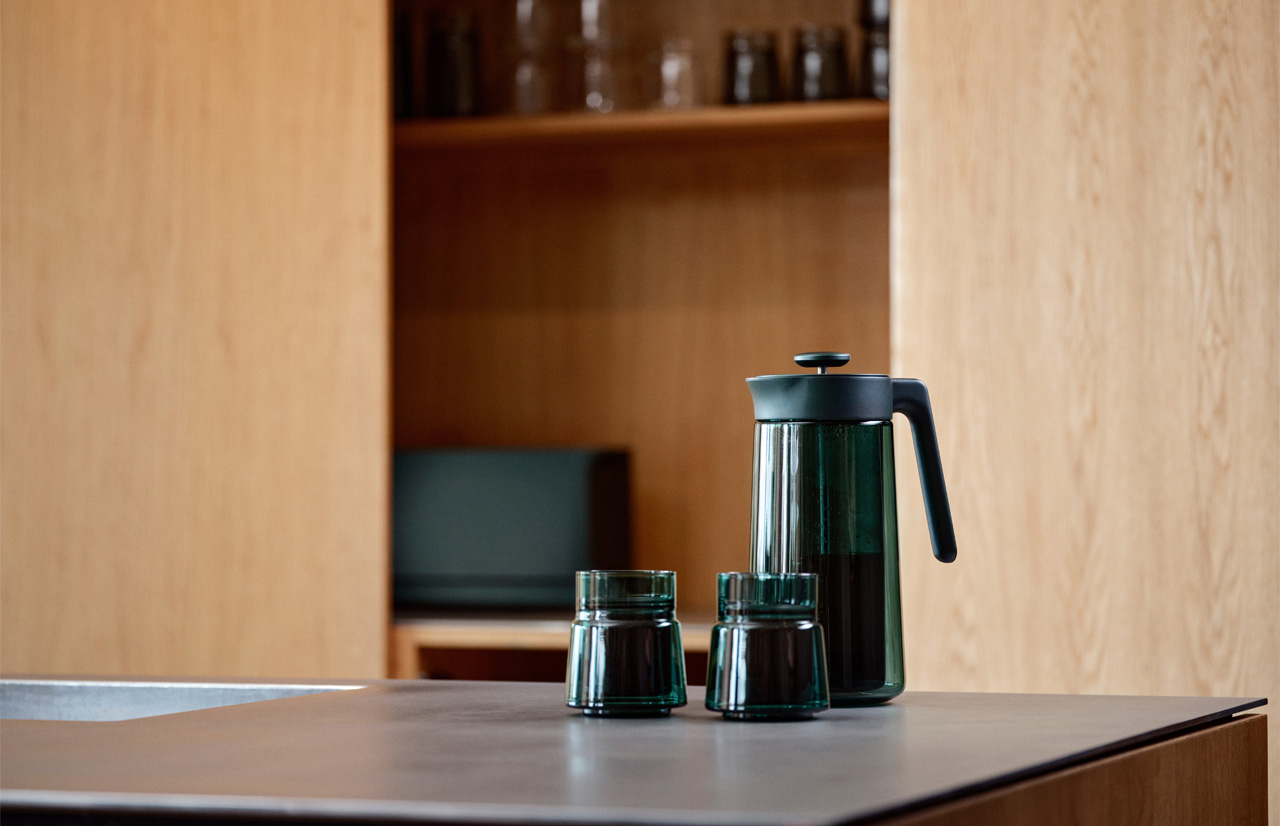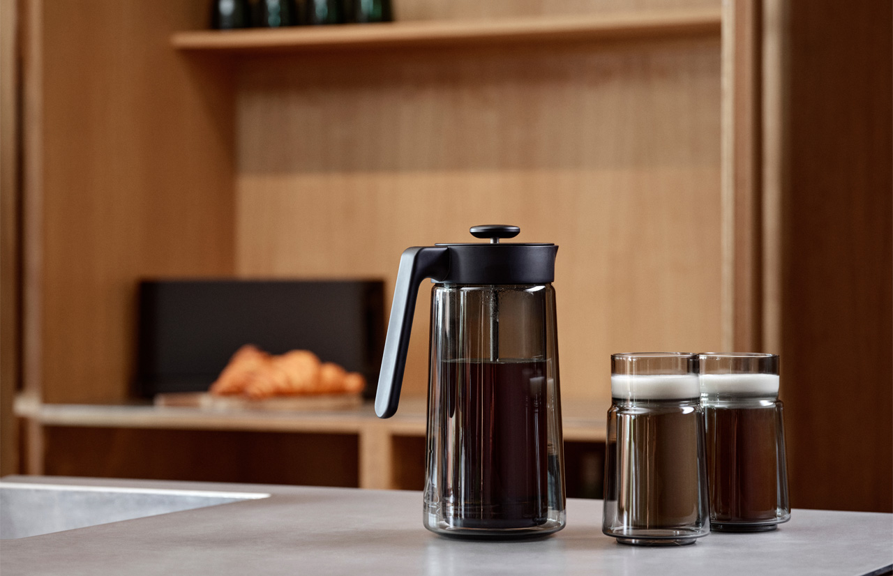 Dvigubas stiklinės korpusas saugo pirštus nuo karščio