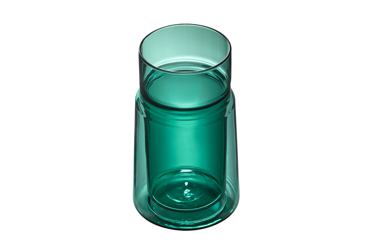 Dvigubas stiklinės korpusas saugo pirštus nuo karščio