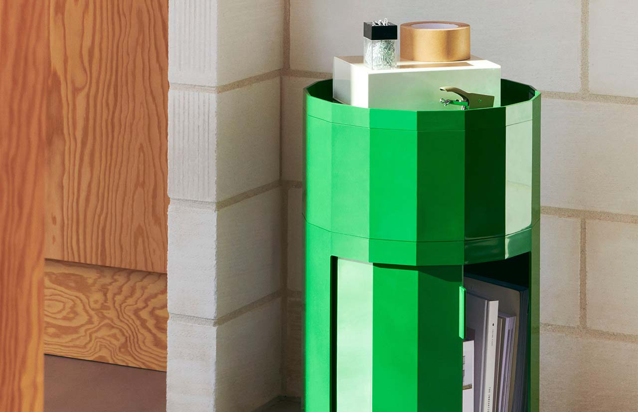 „Facet Cabinet“ yra dviejų skirtingų aukščių (aukštesnė versija turi nuimamą viršutinį skyrių) ir džiugina laikui nepavaldžių spalvu palete. „Facet“ lankstumas leidžia šią spintelę naudoti įvairiose patalpose ir kontekstuose – nuo naktinės spintelės miegamajame ir šoninio staliuko svetainėje iki raštinės reikmenų organizatoriaus namų biure.