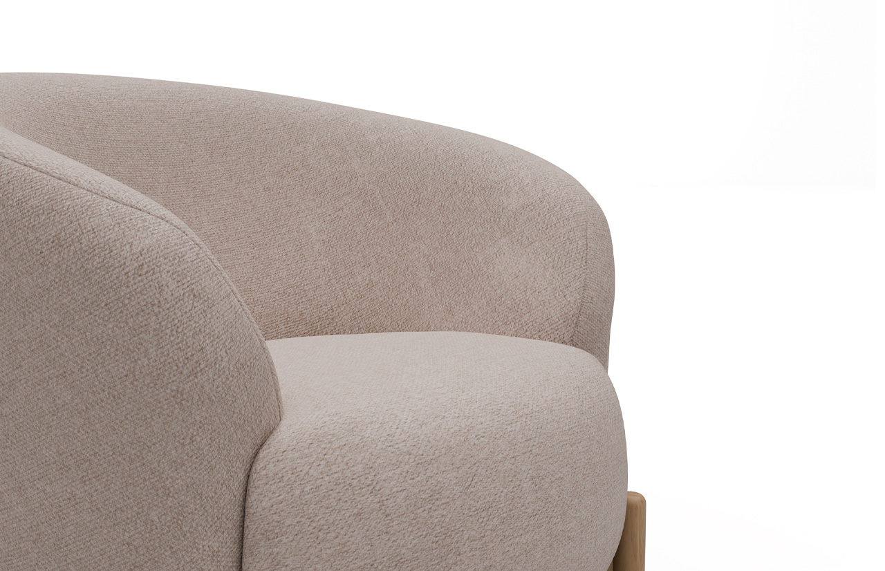 | Medžiagiškumas: | 100% poliesteris, kojos - lakuotas ąžuolas, „Weda - Sand“ audinys |