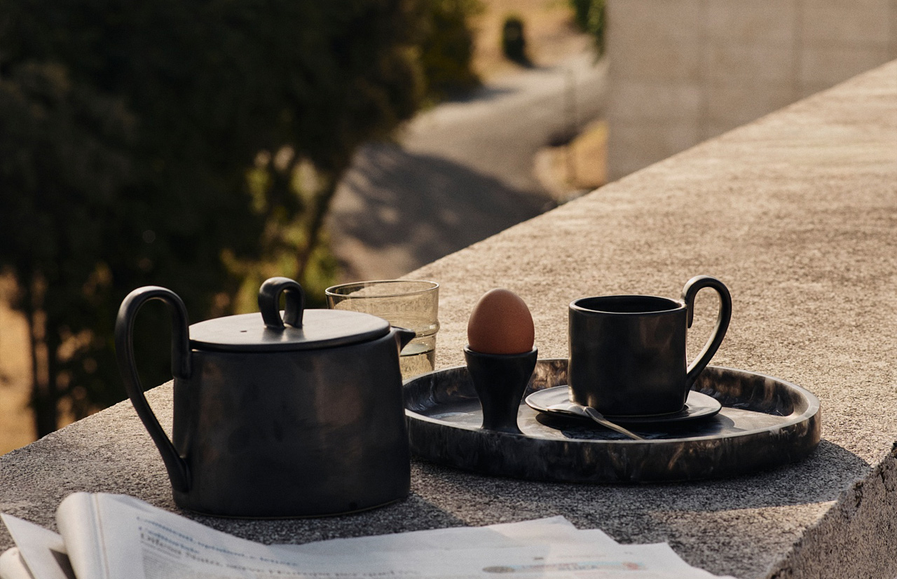 Puodelis su lėkštute „Flow“ yra dalis serijos tobulai netobulo stalo indų, sukurtų šiuolaikiniam skoniui, pasitelkiant tradicinius meistrystės metodus. Pagamintas iš akmens masės su pusiau matinio blizgesio glazūra, puodelis pasižymi švelniai suapvalinta siluete ir lenktu rankenėle, suteikiančia žaismingumo. Lėkštutė prideda praktišką ir elegantišką detalę, puikiai tinkamą patiekti kartu su sausainiu.