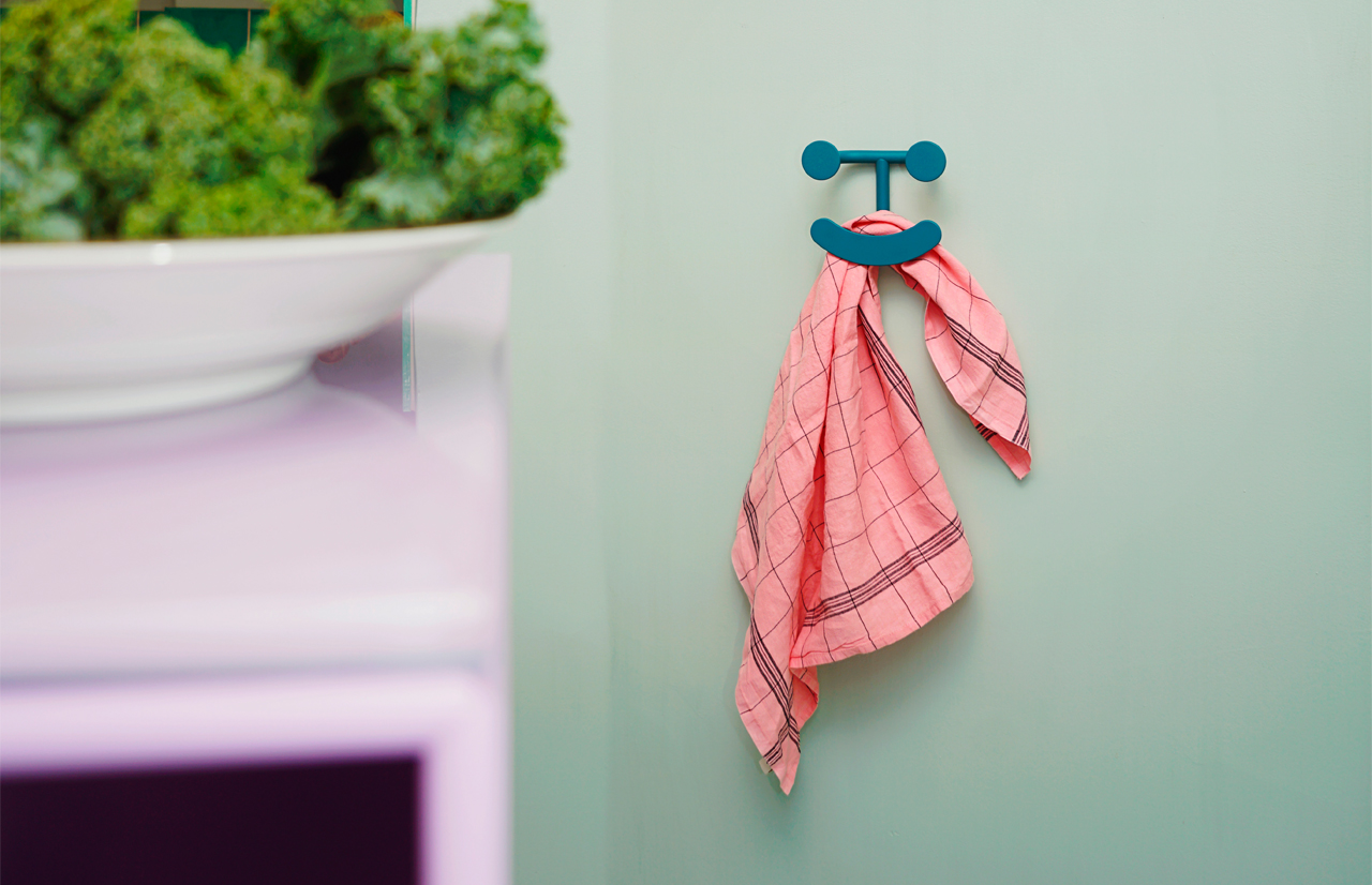 Žaisminga HAPPY kabykla – ispanų dizainerio Jaime Jayon darbas. „Laimė – tai požiūris“, įsitikinęs dizaineris, ir jo darbai, be abejonės, yra aiškiausias šio požiūrio atspindys. Besišypsanti kabyklėlė džiugins įvairiausiose erdvėse: prieškambaryje, vonioje ar virtuvėje. Sodraus turkio šypsenos nepaslėpsite net pasistengę.