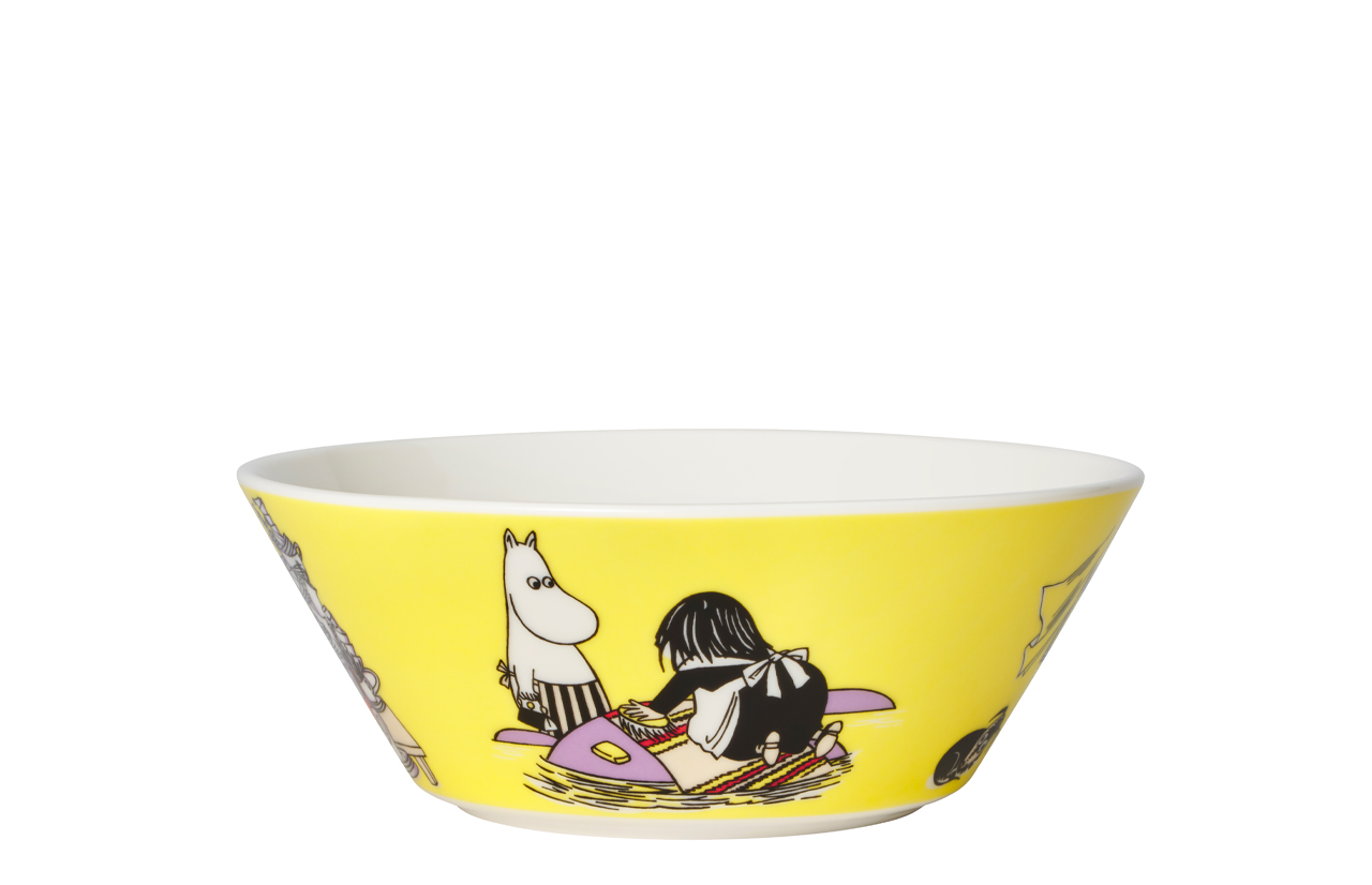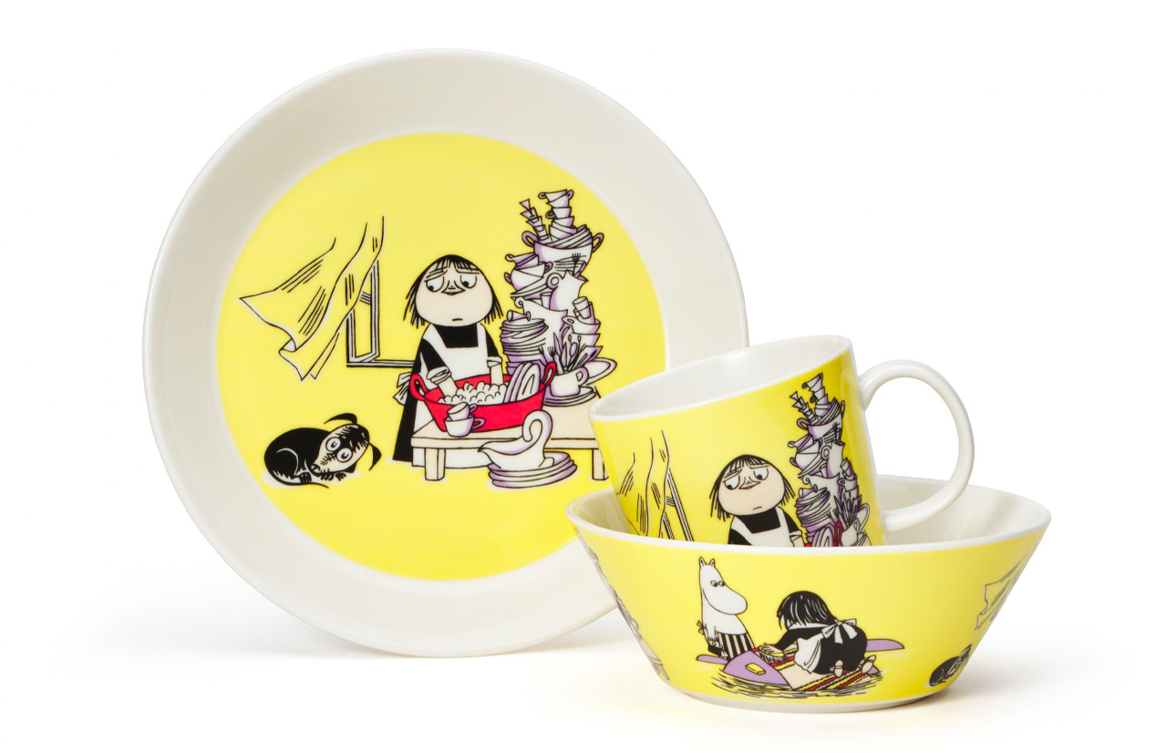 Naujasis geltonas Moomin kolekcijos dubuo Misabel – iliustruotas paveikslėliu iš 1956 m. knygos „Muminuko Mamos tarnaitė“ ir vaizduoja besitvarkančią Misabelę.