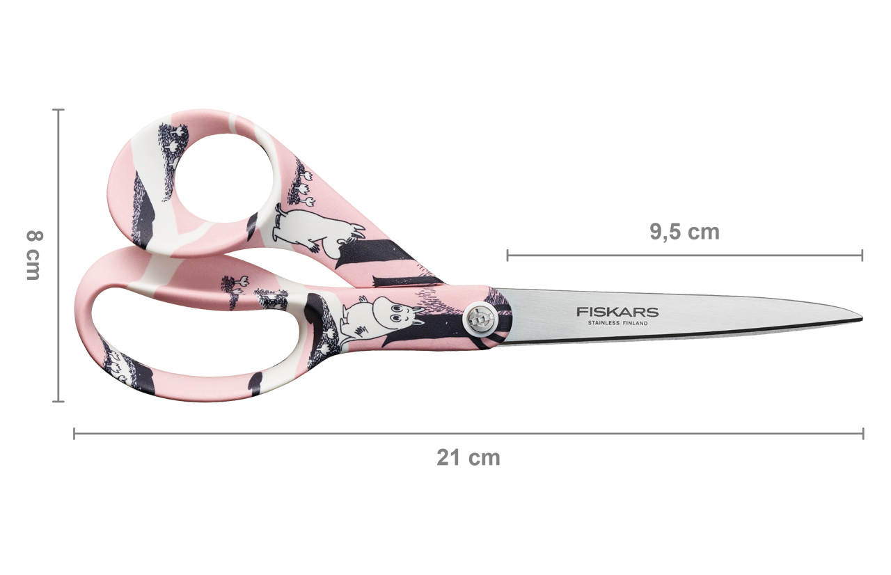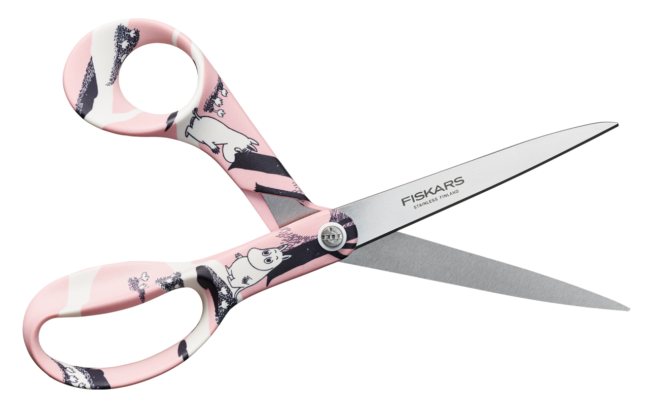 Visų mylimus Mumių veikėjus dabar galima sutikti ir ant Moomin žirklių, kurios suteiks daugiau šilumos ir džiugesio tiek vaikams, tiek ir suaugusiems. Ryškiai dažytos, naudojant pažangią technologiją užtikrinančią dekoracijų ilgaamžiškumą. Žirklės pasižymi tokia pačia aukšta kokybe kaip ir kitos Fiskars žirklės: aukštos kokybės ašmenimis tiksliam kirpimui ir ergonomiškomis rankenomis didesniam patogumui. Kaip ir Mumiai, mes taip pat norėtume daugiau laiko skirti dalykams, kuriuos mėgstame.