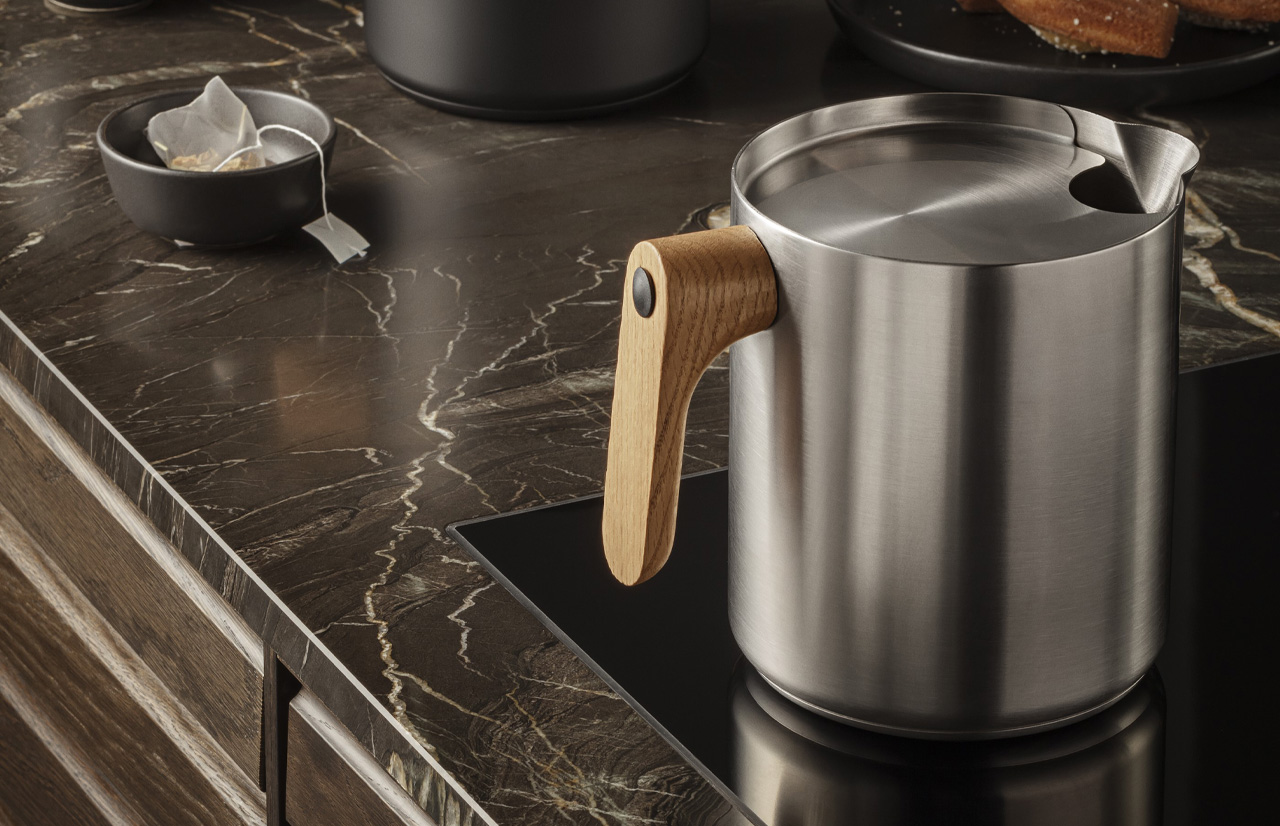 - Kompaktiška 1 l talpa – ideali kasdieniam arbatos ar kavos kiekiui, neužima daug vietos virtuvėje.