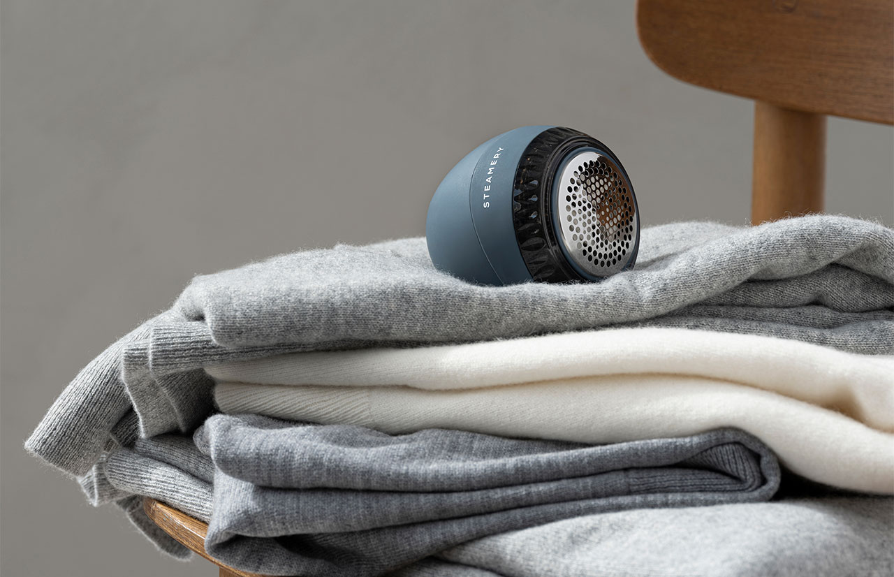 Naudojimas: padėkite rūbą ant lygaus paviršiaus ir švelniai braukite antgaliu per audinį; išgaubimai šonuose padeda patogiai laikyti prietaisą rankoje. Steamery PILO 1 pūkų rinkiklis tinka visų tipų medžiagoms, tačiau būkite itin švelnūs su jautriais audiniais: kašmyru, merino ar alpakos vilna. Norėdami išvalyti prietaisą, atsukite apsauginį žiedą, nuimkite ašmenų apsaugą ir pridedamu šepetėliu švelniai išvalykite surinktus pūkus, prireikus - atsargiai šepetėliu nuimkite ašmenis ir juos nuvalykite.