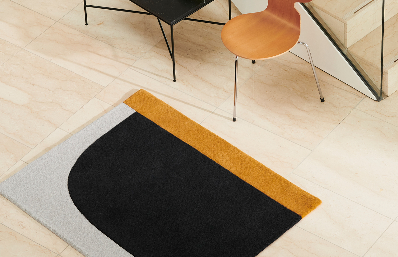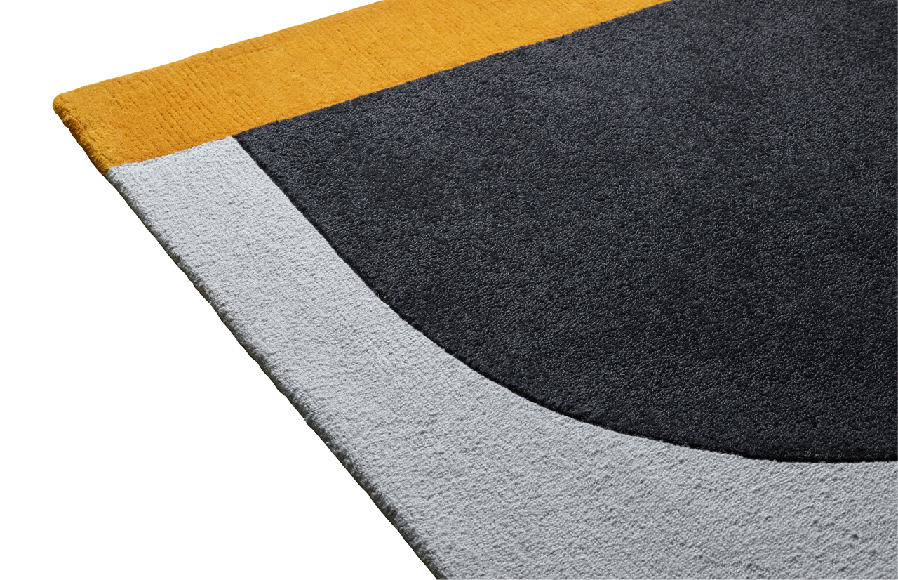 OCHRE spalviškai ryškiausias kolekcijos variantas. Vienijantis juodos, pilko ir ochros atspalvius šis kilimas akcentuoja spalvas bei jų dėka užgimusias formas.