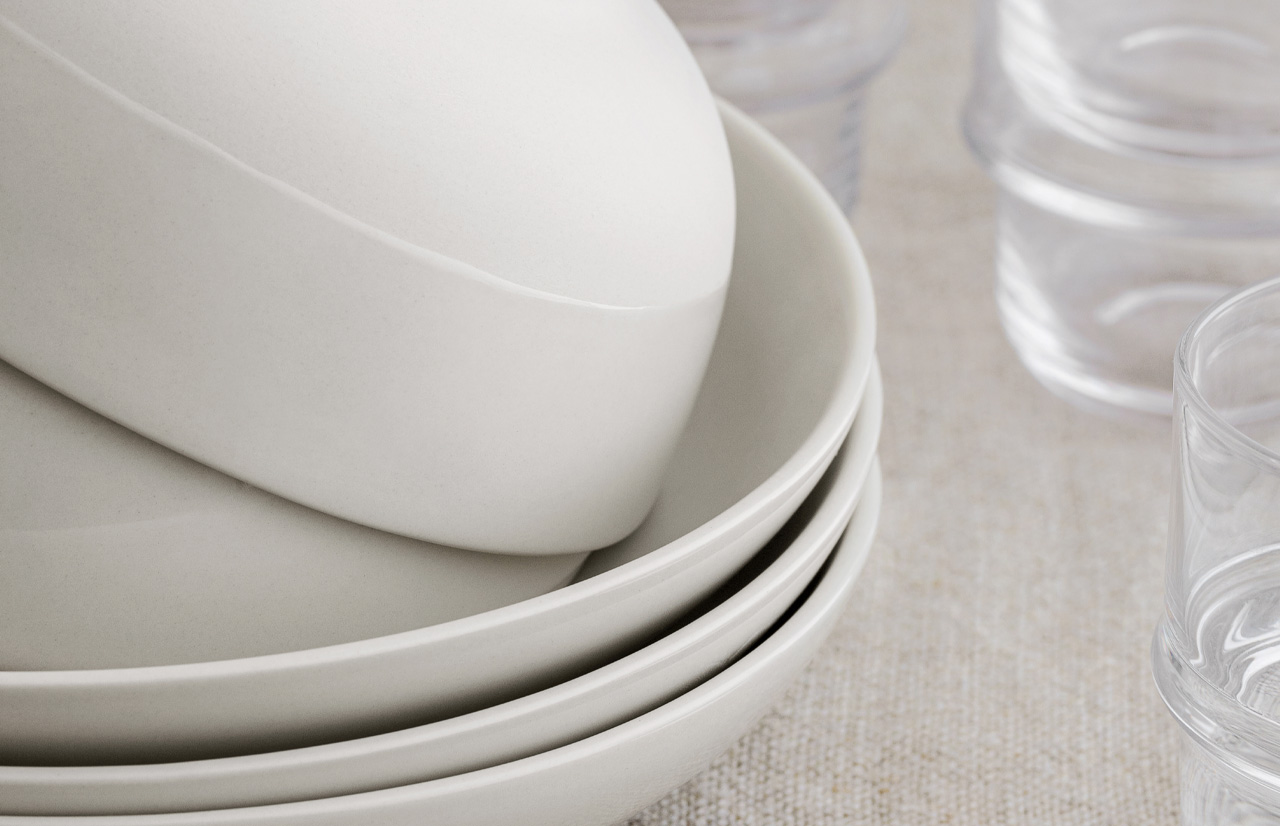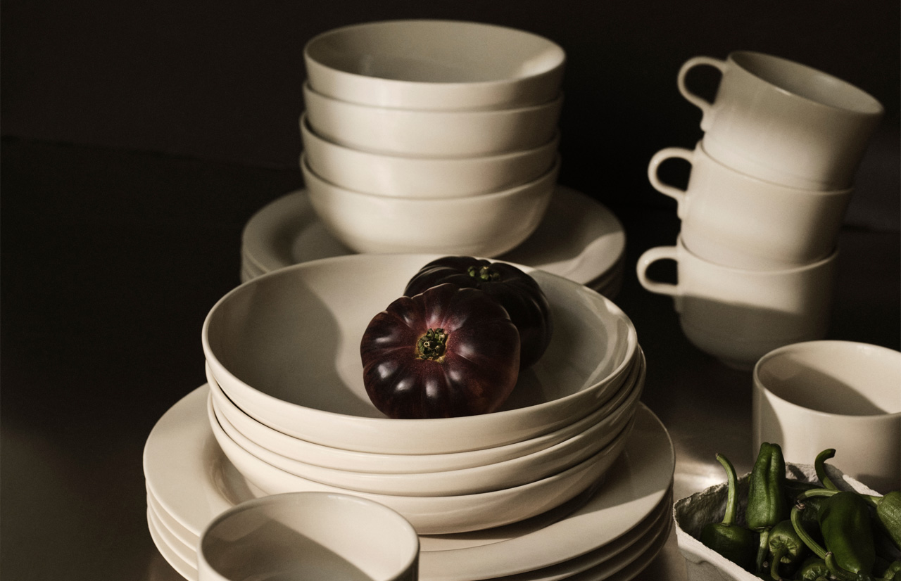 Matinė struktūra išnaudoja šviesos žaismą ant paviršių, o akmens masės keramika yra visiškai arba iš dalies padengta skaidria glazūra. Formos ir apdaila yra švelnios, o kiekvienas indas gali būti naudojamas įvairiais būdais — puodelis be rankenėlės gali tapti dubenėliu, o dubenėlis gali būti naudojamas sriubai arba kaip patiekimo lėkštė.