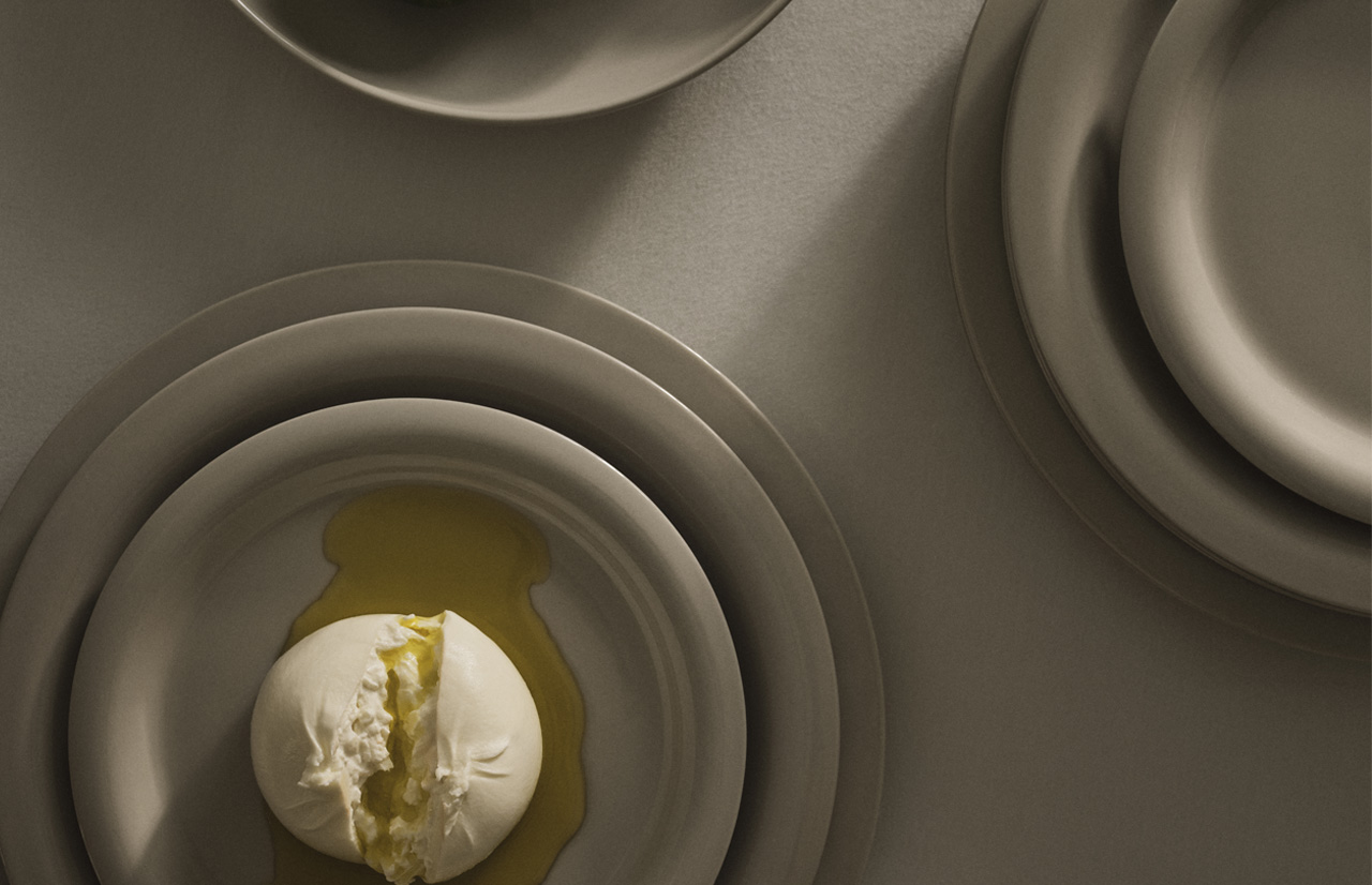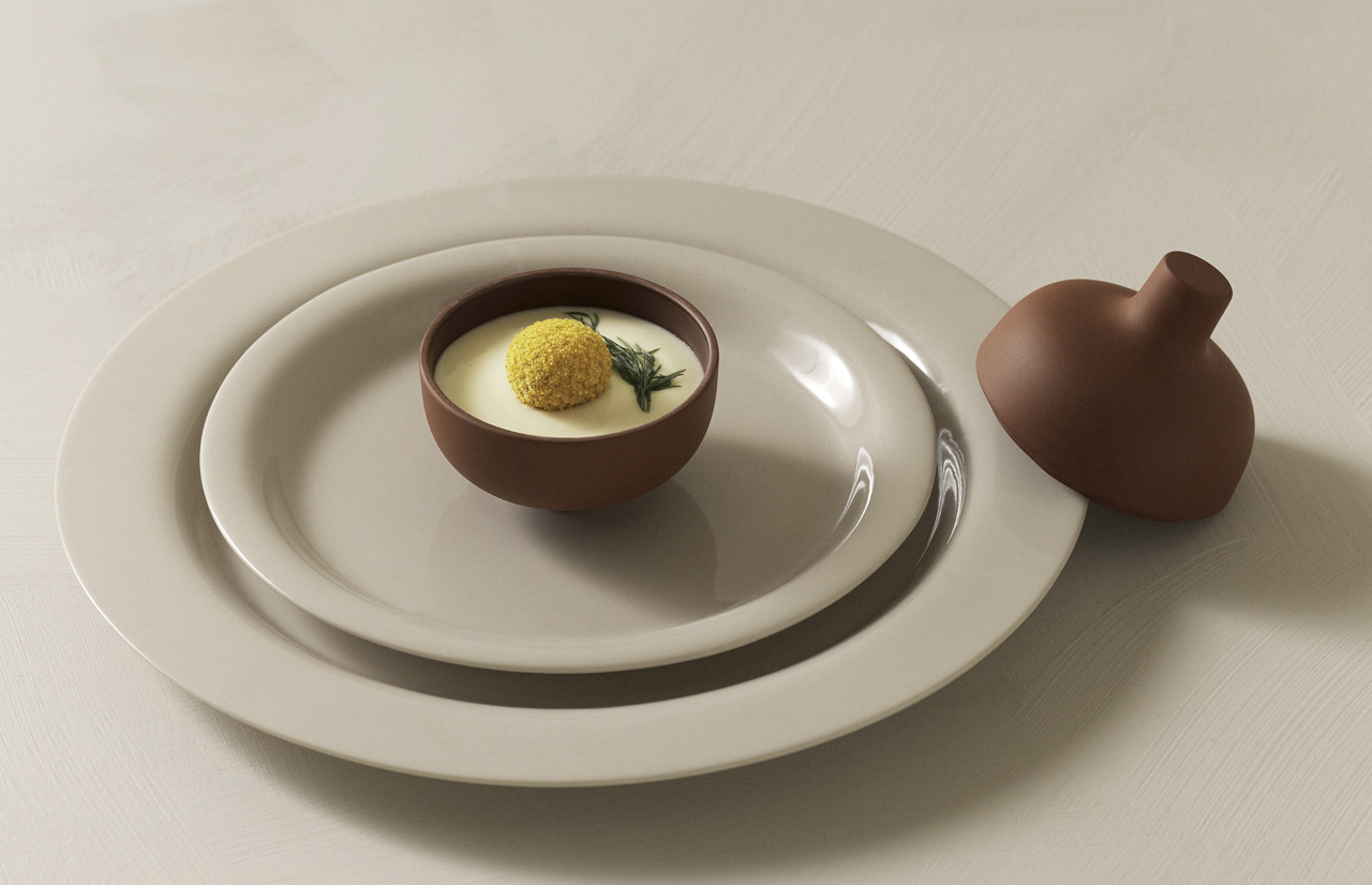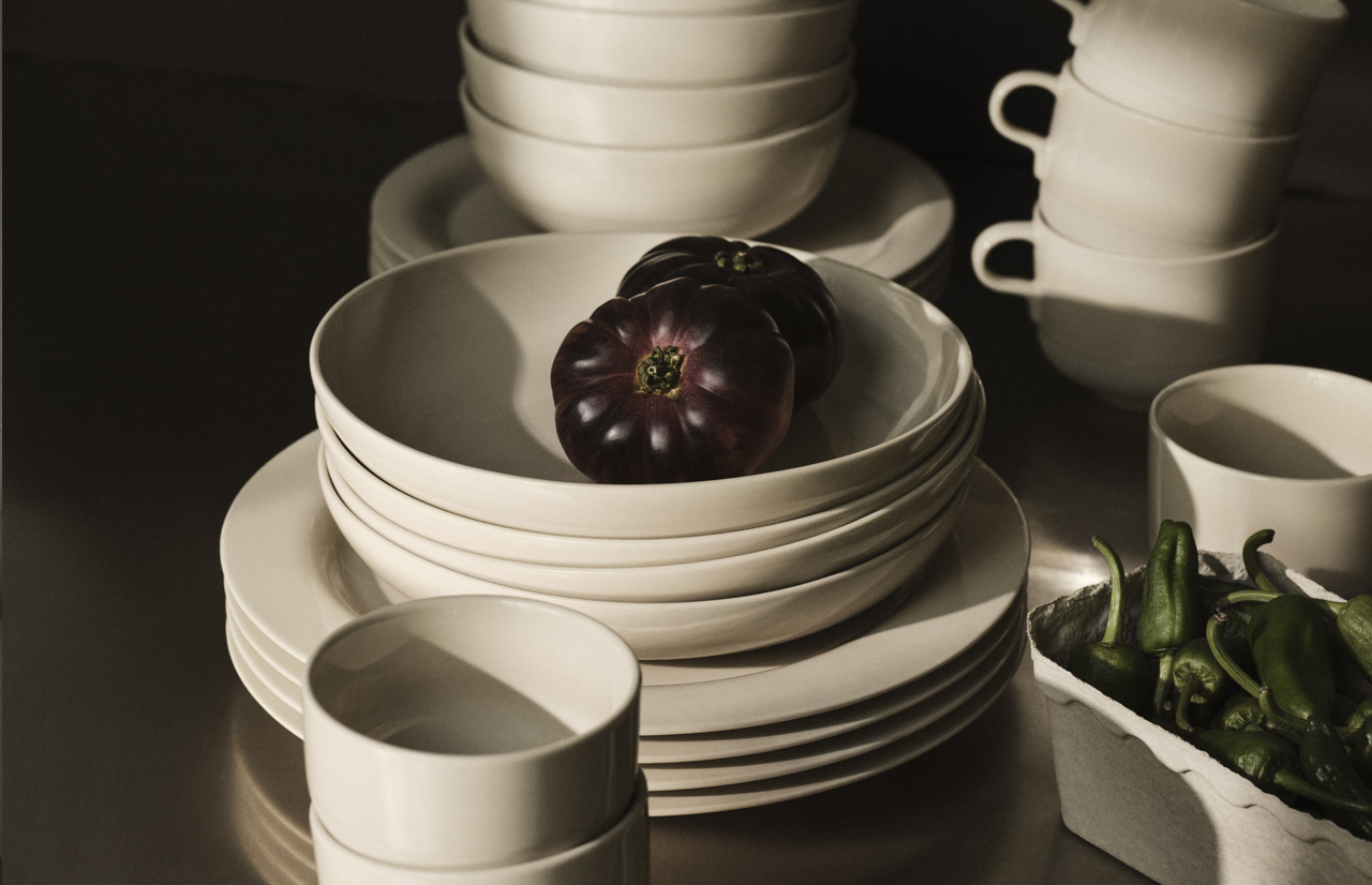 Matinė struktūra išnaudoja šviesos žaismą ant paviršių, o akmens masės keramika yra visiškai arba iš dalies padengta skaidria glazūra. Formos ir apdaila yra švelnios, o kiekvienas indas gali būti naudojamas įvairiais būdais — puodelis be rankenėlės gali tapti dubenėliu, o dubenėlis gali būti naudojamas sriubai arba kaip patiekimo lėkštė.