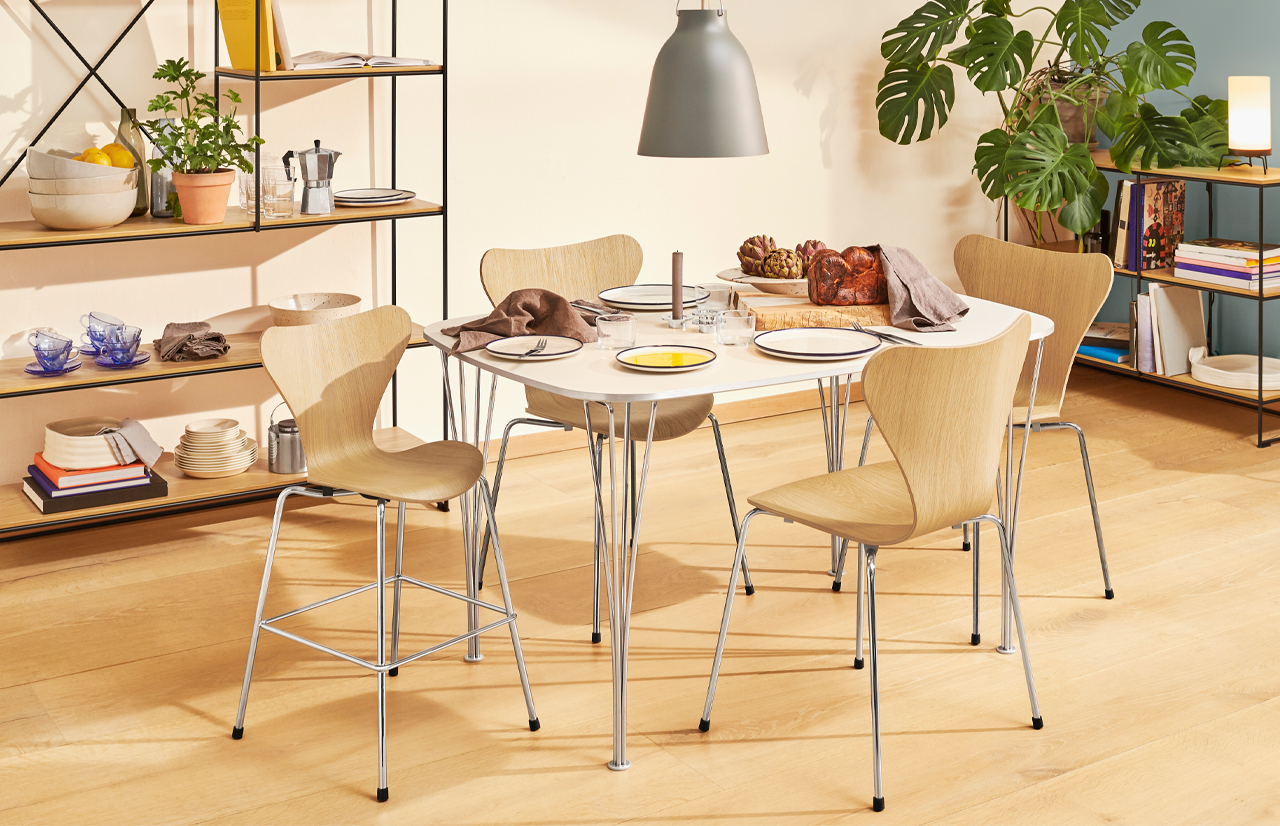 SERIES 7 kėdę 1955 metais sukūrė Arne Jacobsen. Ši revoliucinė kėdė iš esmės pakeitė danų ir skandinaviškojo dizaino istoriją bei tapo viena iš populiariausių Jacobsen sukurtų kėdžių. Vien 1955 metais buvo parduota daugiau nei 5 milijonai kėdės vienetų, todėl nenuostabu, jog SERIES 7 sutinkama ne tik namų, ofisų, viešbučių interjeruose, bet atpažįstama ir kino ekranuose, televizijos studijose. Itin kokybiška, tvirta, tačiau lengva, susidedanti viena ant kitos, SERIES 7 – tai amžinas modernizmo, stiliaus ir gero skonio simbolis.