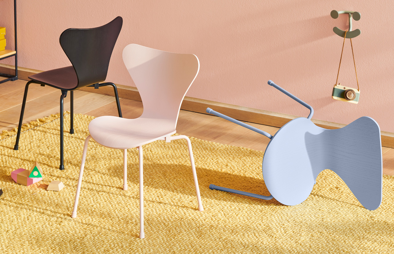 SERIES 7 vaikiška kėdė – sumažinta originalios kėdės versija, sukurta išskirtinai vaikams. Švelni rausva spalva šiam dizainui suteikia žaismingumo bei padeda suskambėti vaikų kambario interjere.