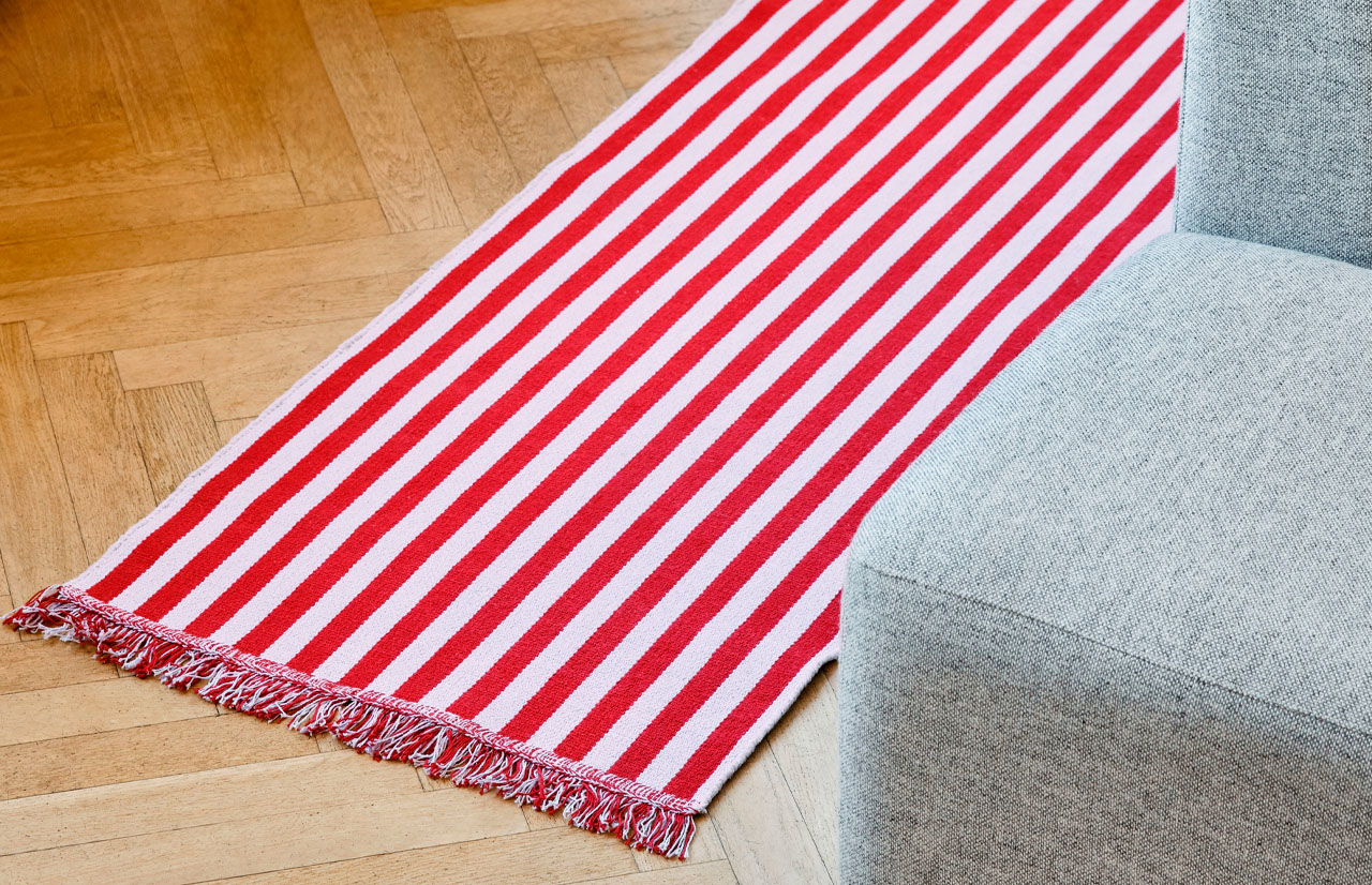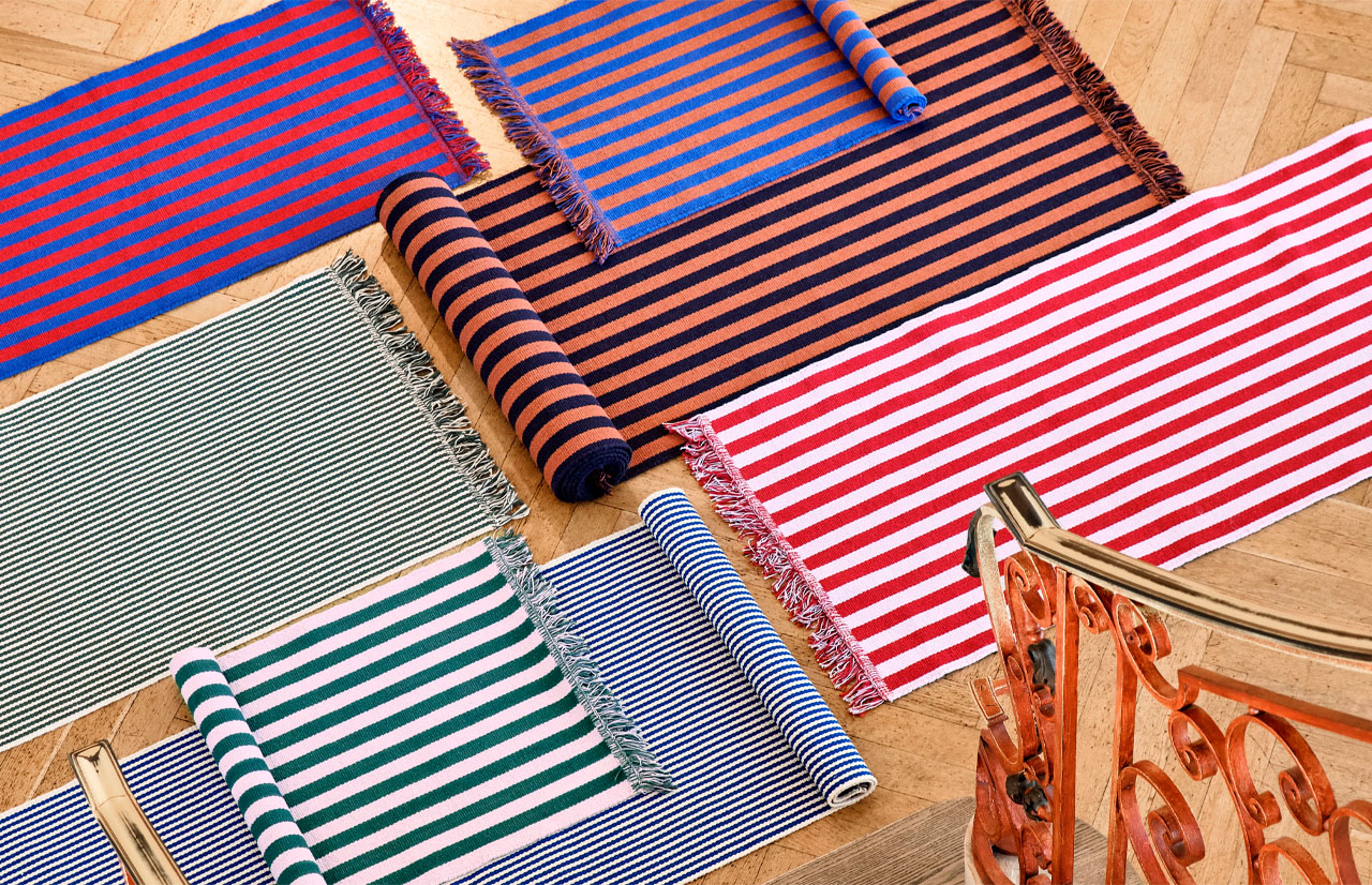 Ryškios spalvos ir kontrastingi dryžiai suteikia STRIPES AND STRIPES kolekcijai grafiškai efektingą išraišką. Pagaminti iš itin patvarios medvilnės, paskaninti žaismingais kutais galuose, šie kilimėliai dekoratyvus ir praktiškas interjero elementas. Virtuvė, koridorius, miegamasis ar net svetainė – dryžiai atskleidžia tikrąjį Jūsų namų charakterį! Galimi du dydžiai ir net šešios spalvinės kombinacijos.