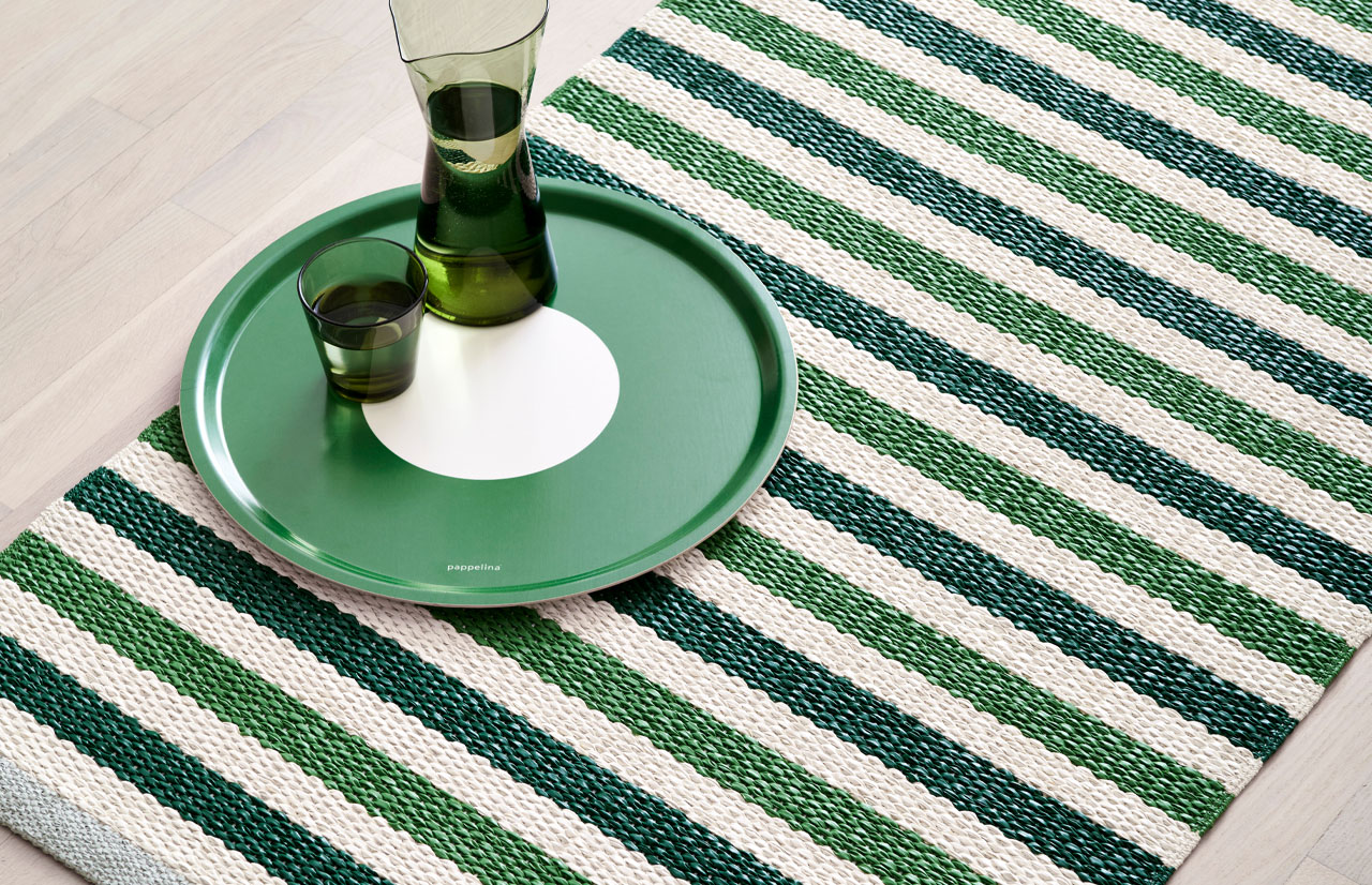Unikalūs, modernūs Švedijos įmonės „Pappelina“ kilimai bei minkštieji baldai gaminami laikantis aukštų aplinkosaugos standartų ir išsiskiria paprastu, funkcionaliu dizainu bei nepriekaištinga kokybe. Neįprasti, bet praktiški „Pappelina“ kilimai gaminami iš minkšto, netoksiško plastiko ir rankomis audžiami Švedijoje, naudojant senąsias tradicines audimo stakles. Šie kilimai minkšti, tačiau tinkami tiesti tose vietose, kur daug vaikštoma, tiek lauke, tiek namuose – prieškambaryje, virtuvėje ar terasoje. Šie puikūs, nuostabiai žvilgantys kilimai gali būti naudojami iš abiejų pusių.