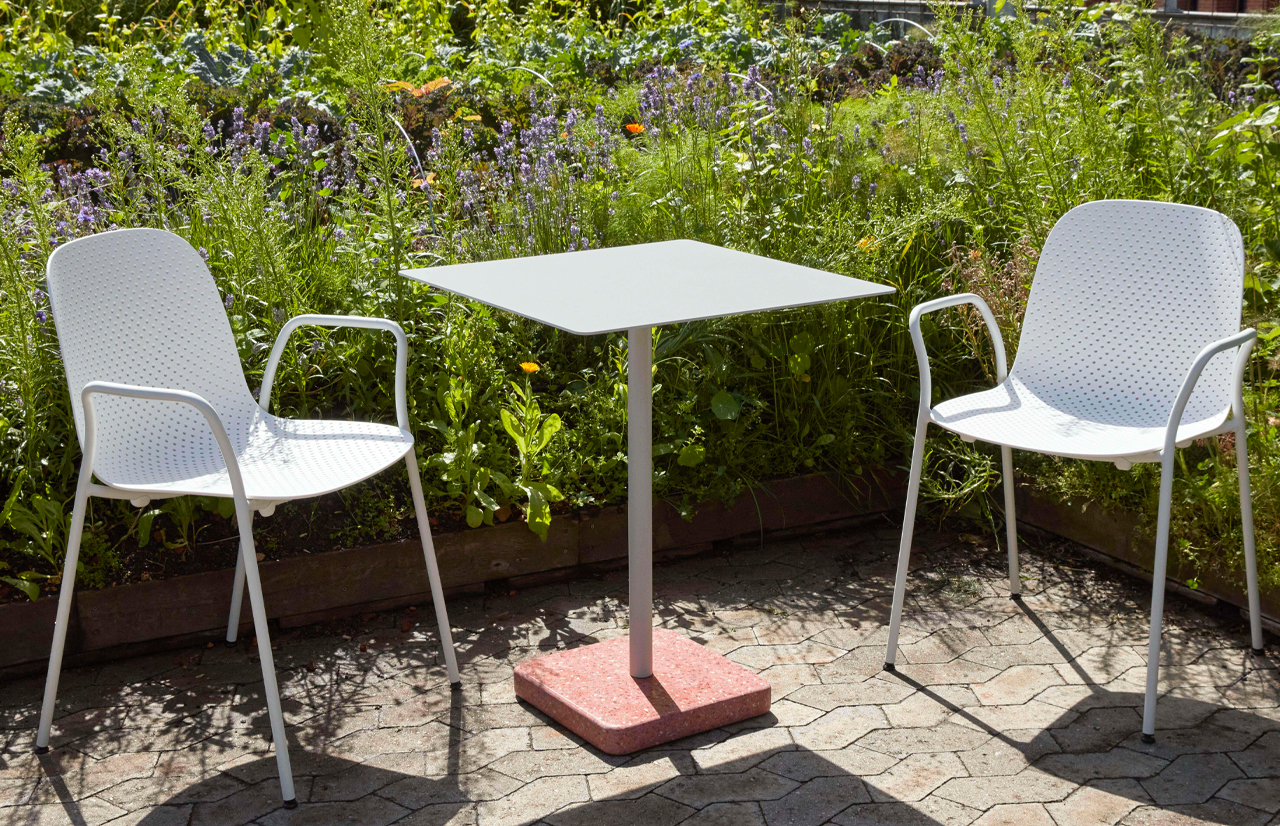 | Medžiagiškumas: | stalo pagrindas - teraco akmuo, stalviršis - atracito pudra dengtas plienas |