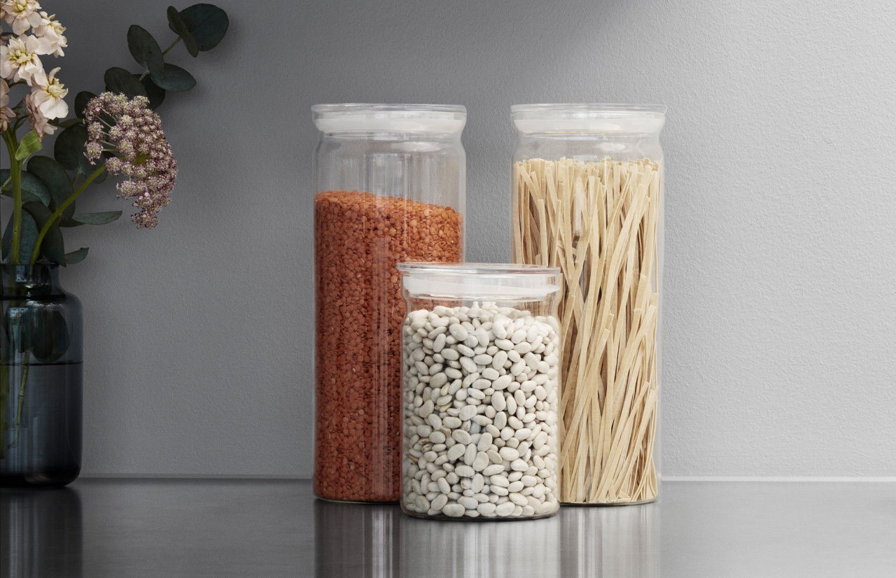 Praktiškas, sausų produktų saugojimui skirtas indas, pagamintas iš itin patvaraus boro silikatinio stiklo. Perregimas, sandariai priglundantis dangtis leidžia iš viršaus įvertinti indo turinį ir lengvai atrasti pageidaujamą produktą.