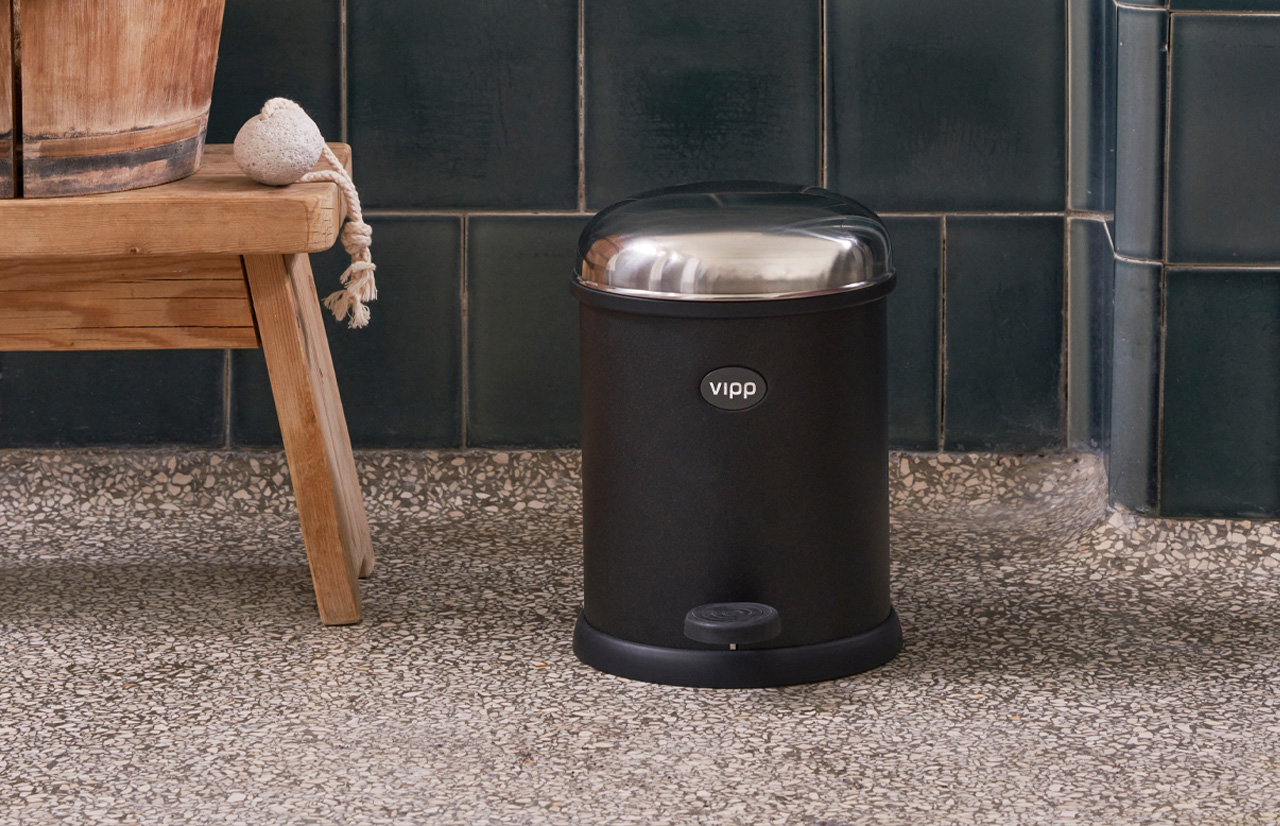Vipp12 yra mažiausia ir kompaktiškiausia šiukšliadėžė. Derinant funkcionalumą su „Vipp“ išskirtiniu dizainu, naujoji Vipp12 pedalais valdoma šiukšliadėžė yra 25 cm aukščio ir 3 litrų talpos, sukurta mažesnėms erdvėms – viešbučių kambariams, biurų tualetams, miesto butams ar svečių vonios kambariams.