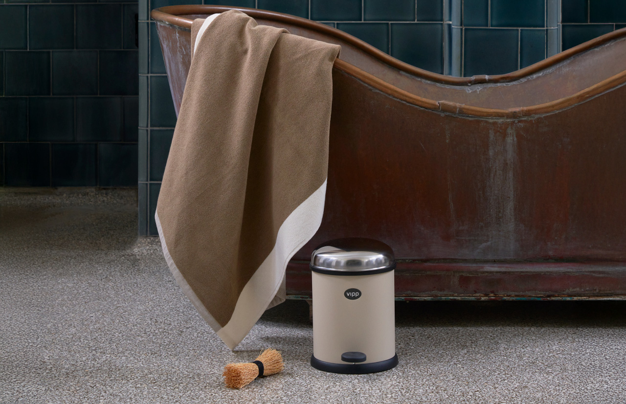 Vipp12 yra mažiausia ir kompaktiškiausia šiukšliadėžė. Derinant funkcionalumą su „Vipp“ išskirtiniu dizainu, naujoji Vipp12 pedalais valdoma šiukšliadėžė yra 25 cm aukščio ir 3 litrų talpos, sukurta mažesnėms erdvėms – viešbučių kambariams, biurų tualetams, miesto butams ar svečių vonios kambariams.