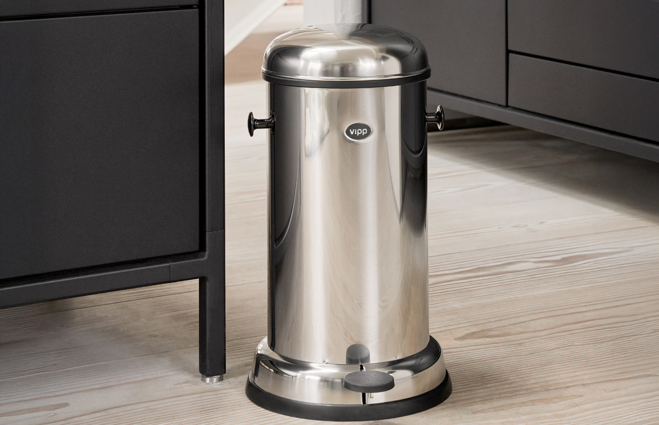 VIPP15, 14L – vidutinio dydžio šiukšliadėžė. Ji nuostabiai papildo virtuvės, vonios, darbo ir kitas erdves. Šiukšliadėžės viduje yra lengvai išimamas įdėklas, todėl ją visuomet paprasta ištuštinti ir išvalyti. Pagrindinį tūrį dengia pedalu valdomas dangtis, kuris ne tik apsaugo erdves nuo nepageidaujamų kvapų, padeda išvengti rankų kontakto, bet ir, specialios amortizavimo sistemos dėka, veikia itin tyliai bei sklandžiai. Šiukšlinės apačioje įtaisytas guminis žiedas apsaugo grindis nuo subraižymų ir užtikrina stabilumą. Stilingas juodos spalvos korpusas praktiškam dizainui suteikia išskirtinės estetinės vertės, akcentuoja ikoninį produkto siluetą bei detales.