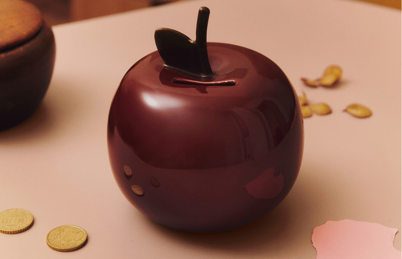 The Apple Money Bank brings a playful spirit to your child’s room, offering a striking, graphic accent to the décor. Crafted from glazed ceramic, it combines joyful character with everyday practicality. Both sculptural and useful, it adds personality and charm to shelves, desks, or bedside tables.