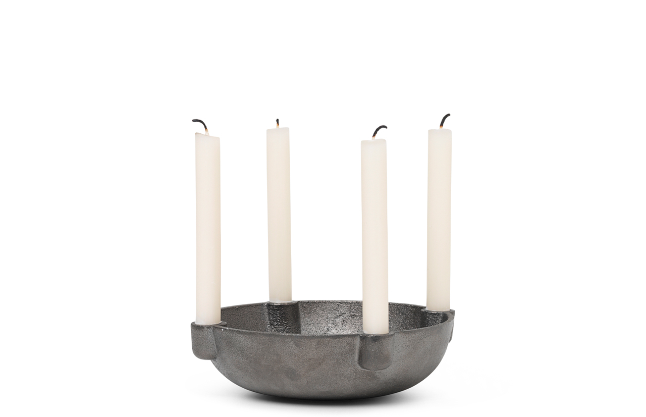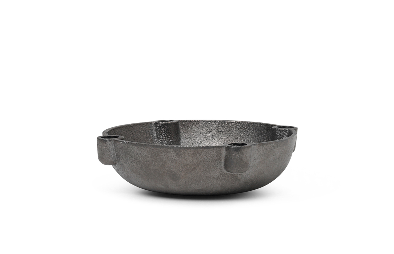 The decorative and functional BOWL candle holder embodies the spirit of traditional crafts. Constructed from solid blackened brass, it boasts a captivatingly organic, minimalistic form. The small bowl can be filled with favourite decorations or little treats. A responsible choice, labelled "RESPONSIBLE."