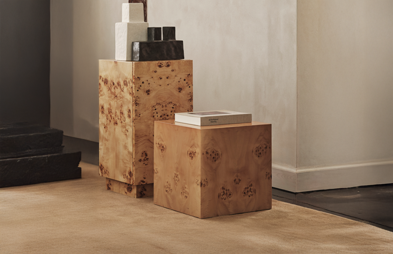 The Burl Cube Side Table takes its name from the beautifully patterned burl wood that defines its character. Known for its unique swirls, knots, and organic irregularities, each table is one-of-a-kind—no two pieces are ever the same.