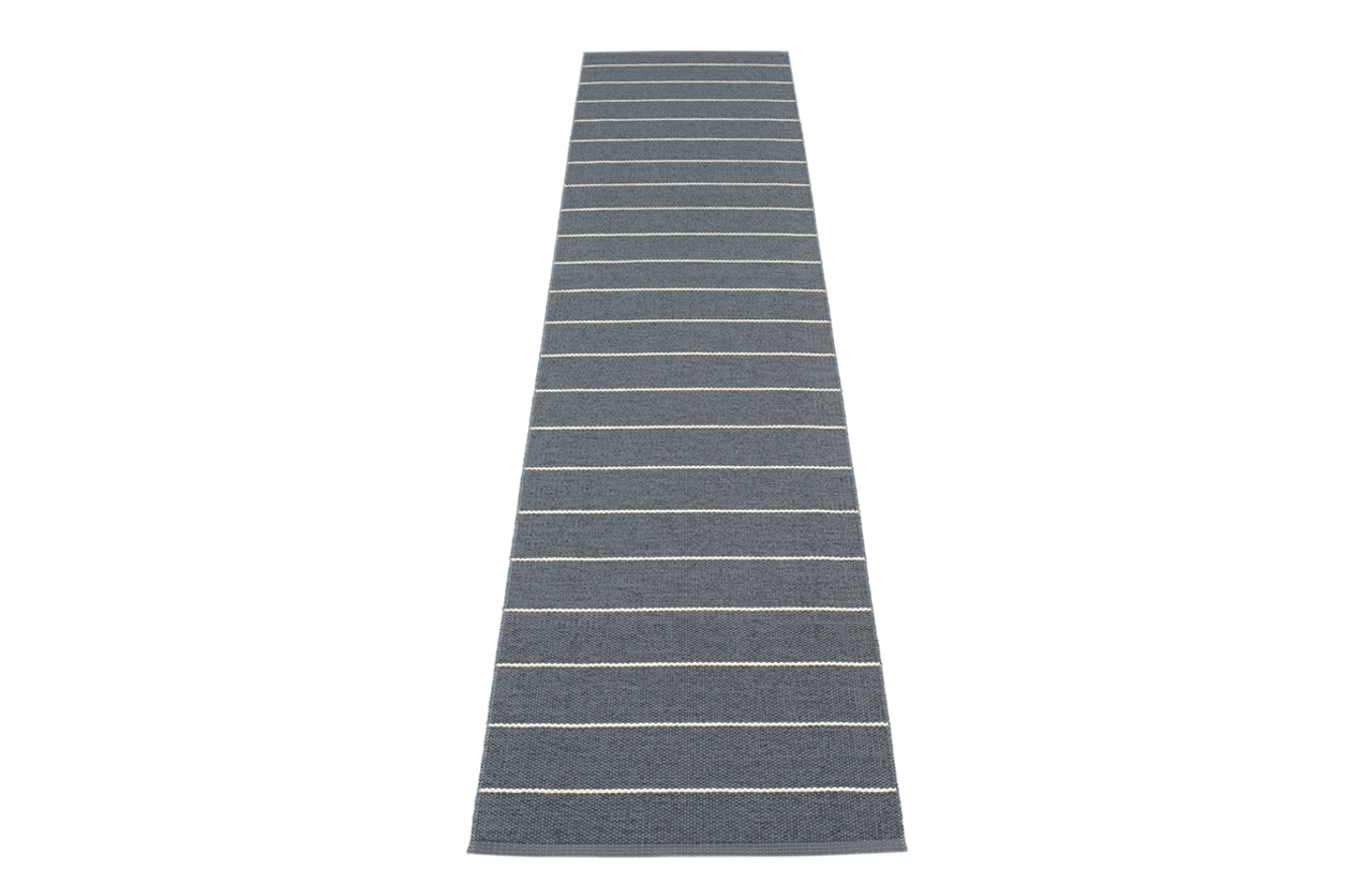 Distinct and contemporary, Pappelina's Swedish rugs and upholstered furniture are produced under strict environmental guidelines, boasting simple, functional design and outstanding quality. Unusual yet practical, "Pappelina" rugs are crafted from soft, non-toxic plastic and hand-woven in Sweden using traditional looms. These rugs, although soft, are perfect for high-traffic areas, both outdoors and indoors – in the hallway, kitchen, or terrace. These stunning, beautifully shiny rugs are reversible.