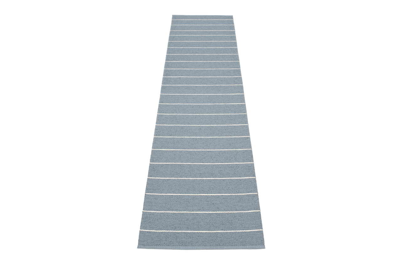 "Pappelina" rugs are crafted from soft, non-slip, moisture and UV-resistant Swedish plastic that remains free from dust and dirt. The rugs are free from heavy metals or harmful softeners and do not emit toxic gases in the event of a fire. The plastic used for "Pappelina" rugs is sourced from a Swedish company with an ISO 14001 environmental certificate. "Pappelina" plastic rugs are truly remarkable: high-quality, extremely durable, long-lasting, and low-maintenance, contributing to environmental conservation. The dyes used for rugs are UV-resistant, and the rugs are perfect for damp spaces such as swimming pools, terraces, or kitchens.