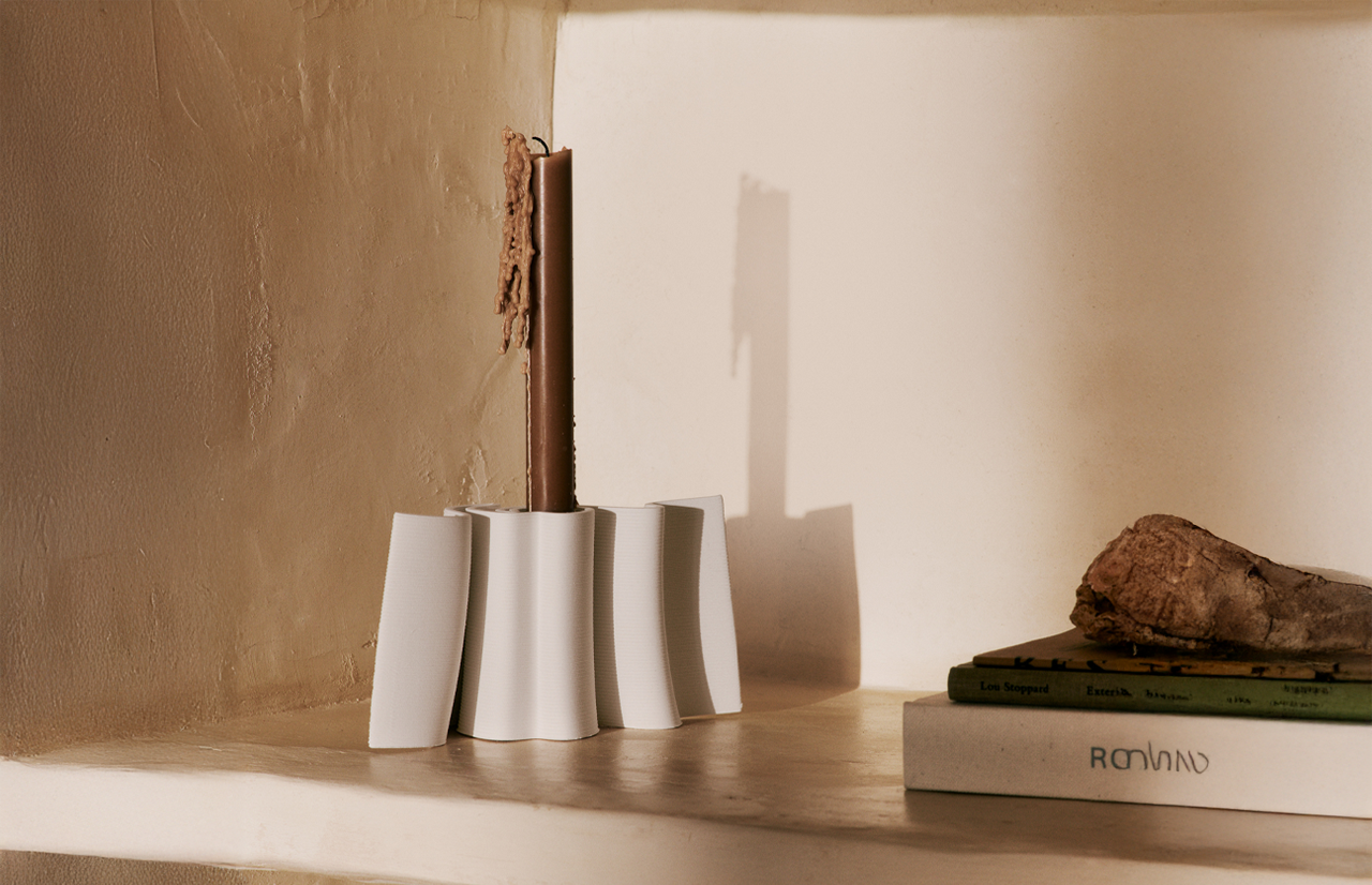Exclusive design Dedali candle holder – a modern and elegant interior accent inspired by labyrinth motifs. Made of 3D-printed ceramics, it stands out with its sculptural form and subtle texture.