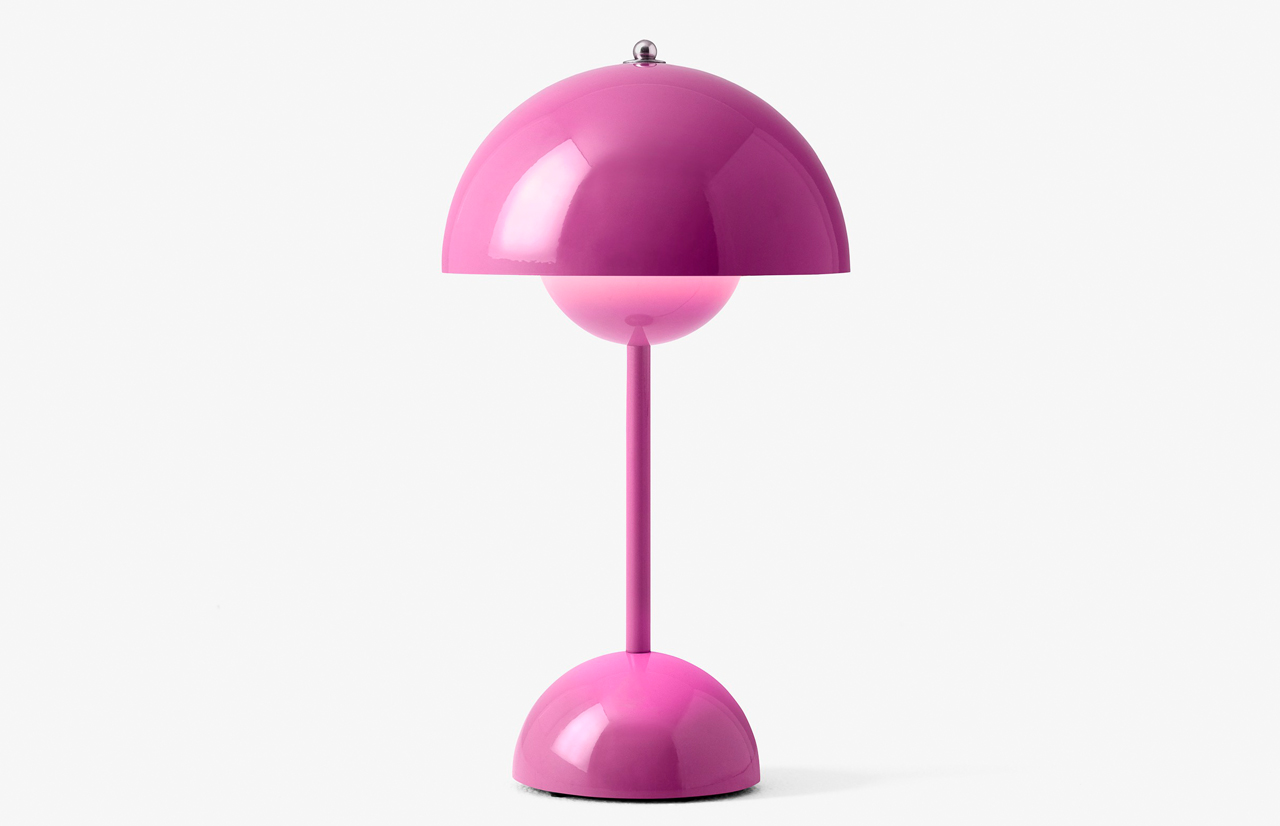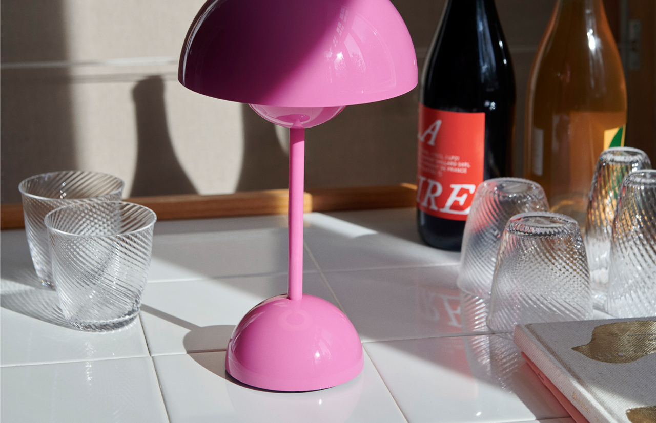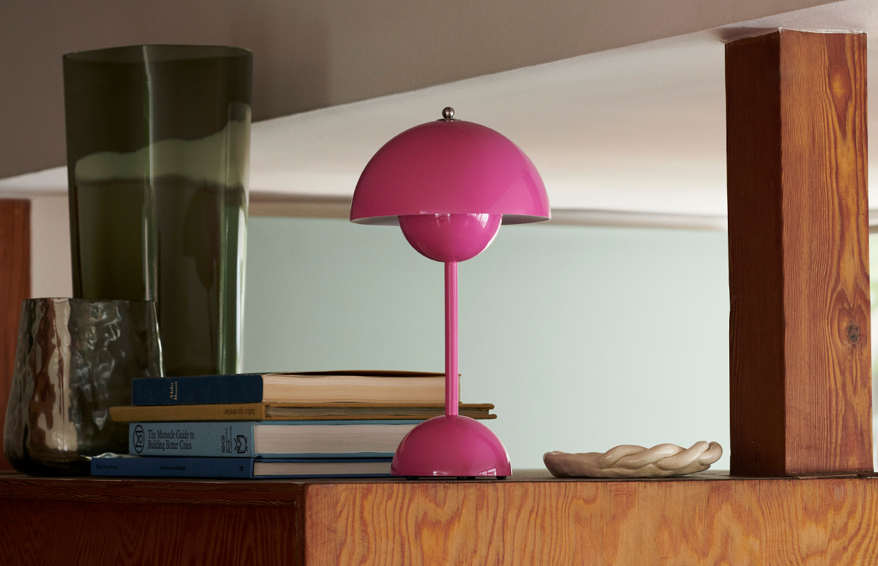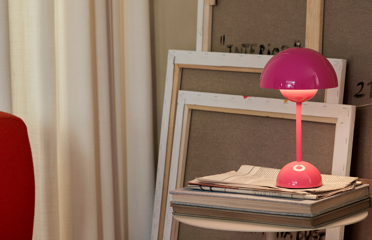 The FLOWERPOT VP9, a portable table lamp with a design of clear geometric shapes, remains as relevant today. With a wide range of colour options, you can play with moods and accents, spreading a peaceful message inspired by the seventies. The updated version includes a magnetic connection allowing the battery to last up to 10 hours when charged. The battery is replaceable, ensuring your beloved lamp can be enjoyed for generations to come.