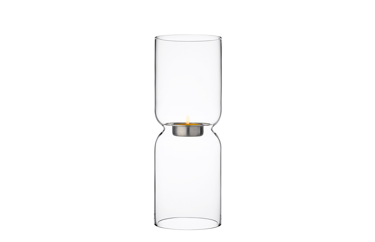 Harri Koskinen's creations have garnered significant international attention. In 1999, he designed a blown glass sculpture with clear, simple lines – the Lantern candle holder. A perfectly situated candle between transparent glass walls gives the illusion of a flame floating in the air.