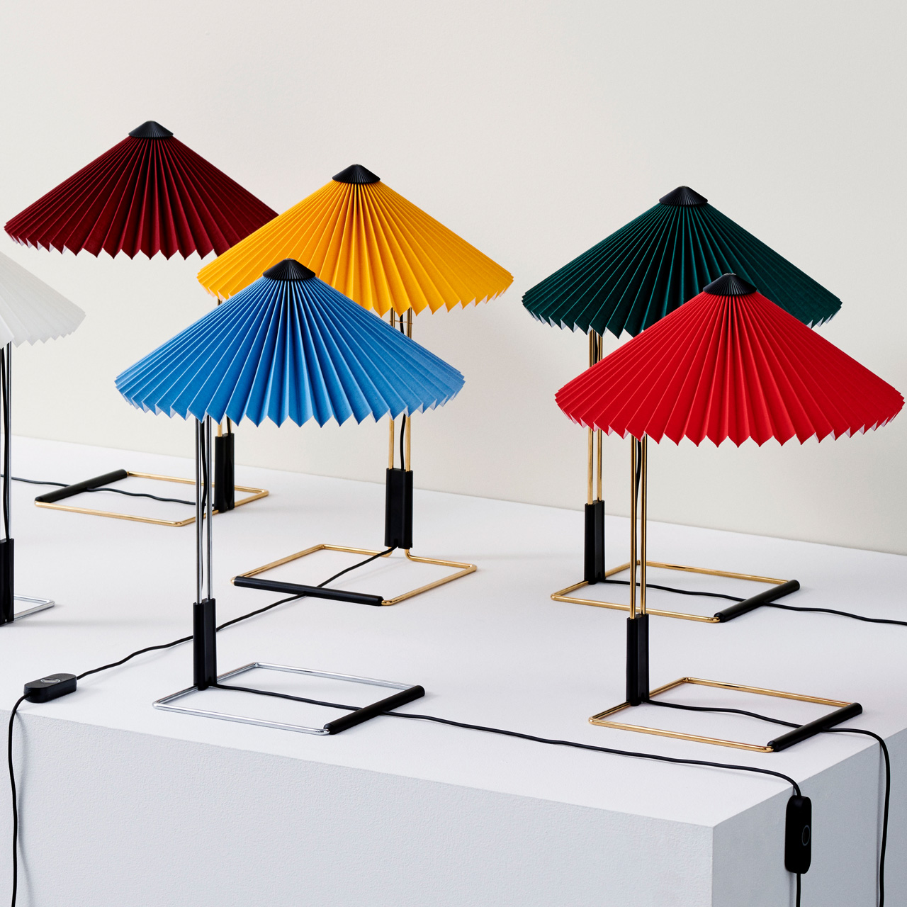 The pleated cotton shade is available in a variety of vibrant colours, making it easy to adapt the lamp to different interior styles - from minimalist to playful or eclectic.