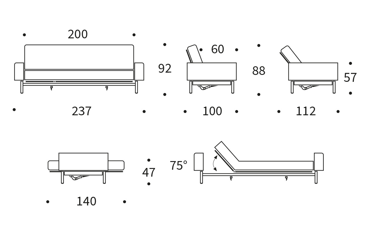 | Dimensions: | height 92 cm, length 100 cm, width 237 cm |