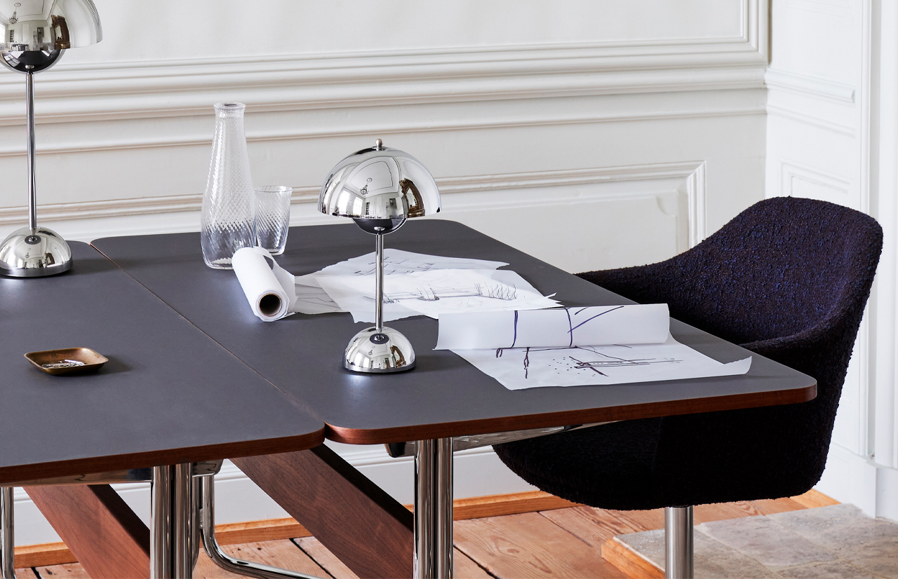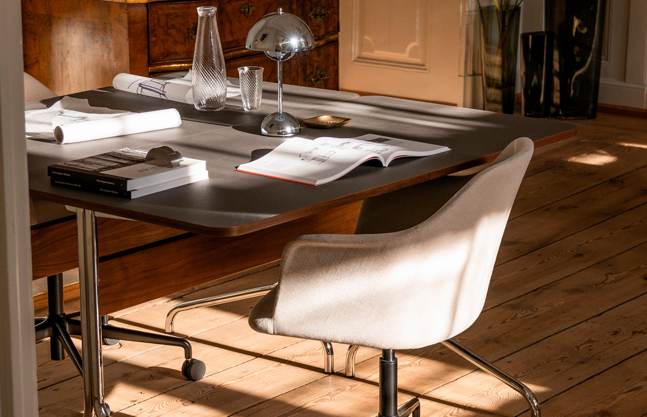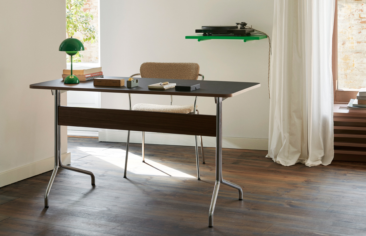 | Material: | FORBO linoleum, chrome-plated steel, varnished walnut |