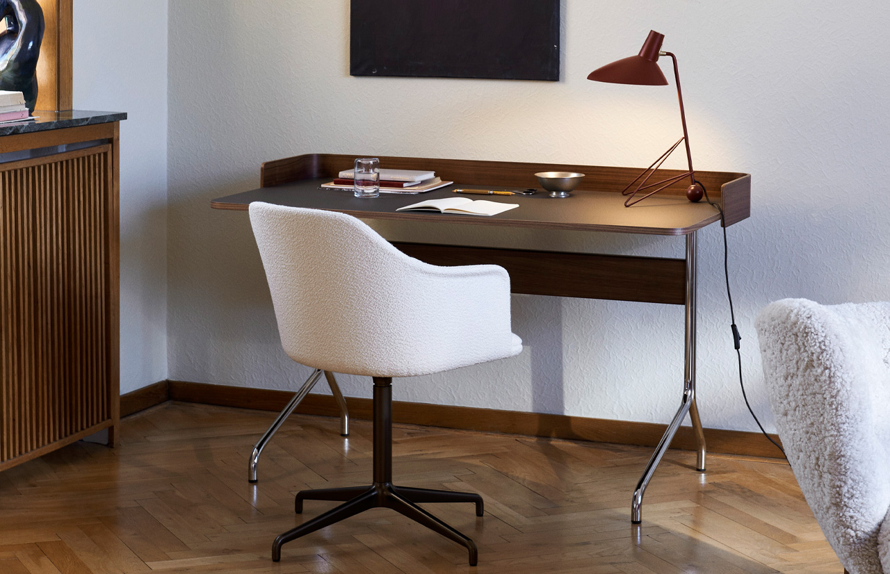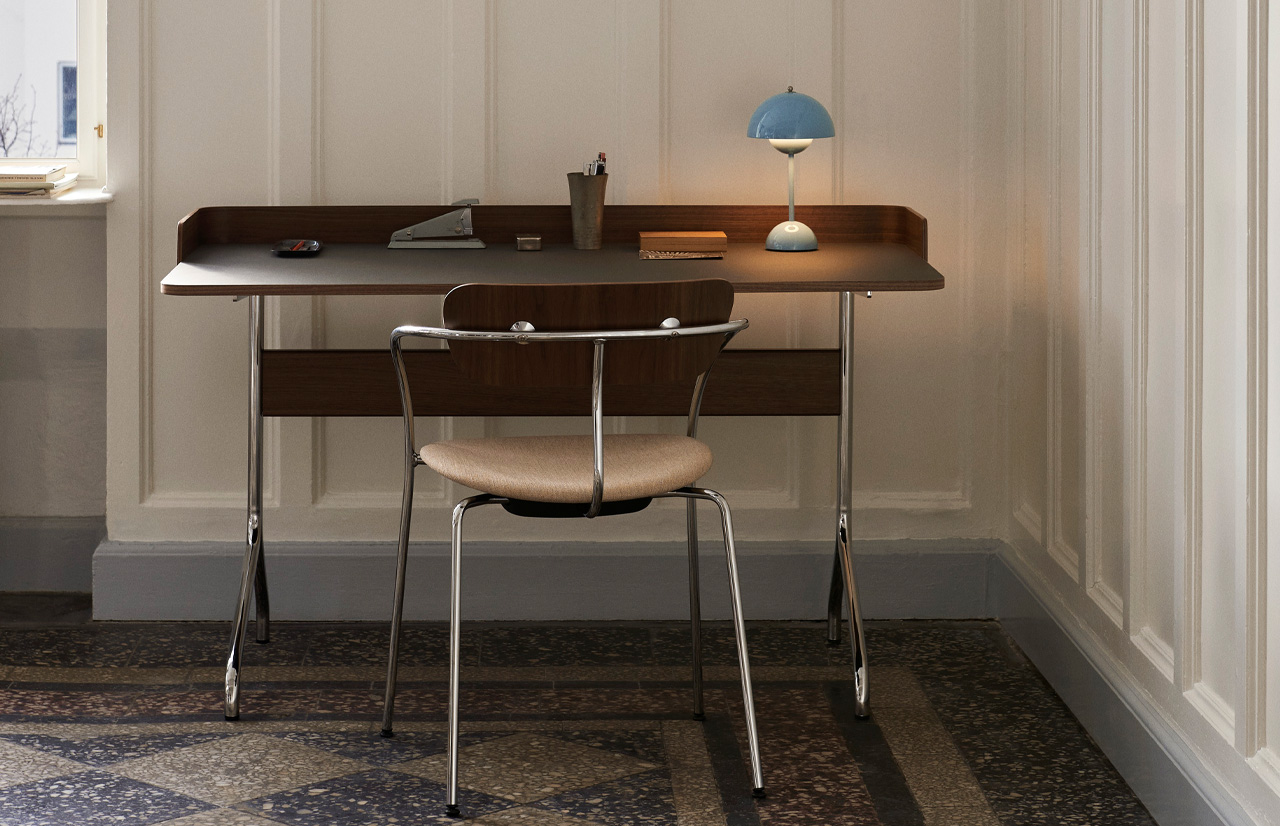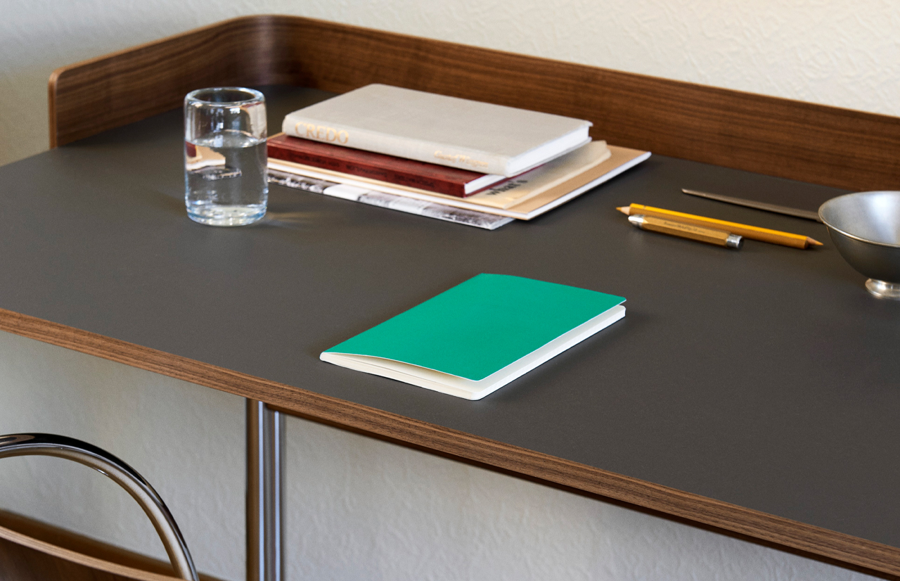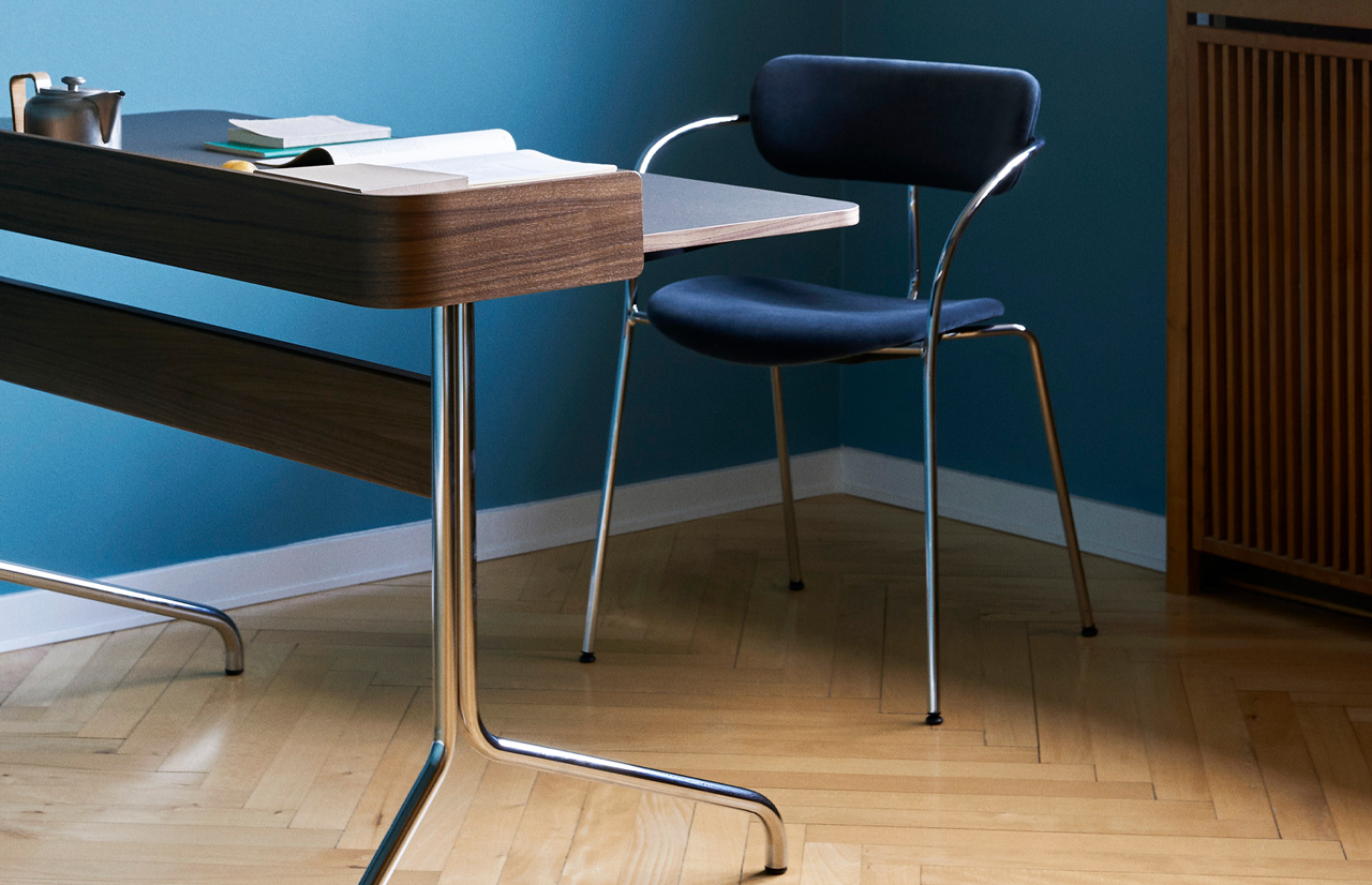 | Material: | FORBO linoleum, chrome-plated steel, varnished walnut |