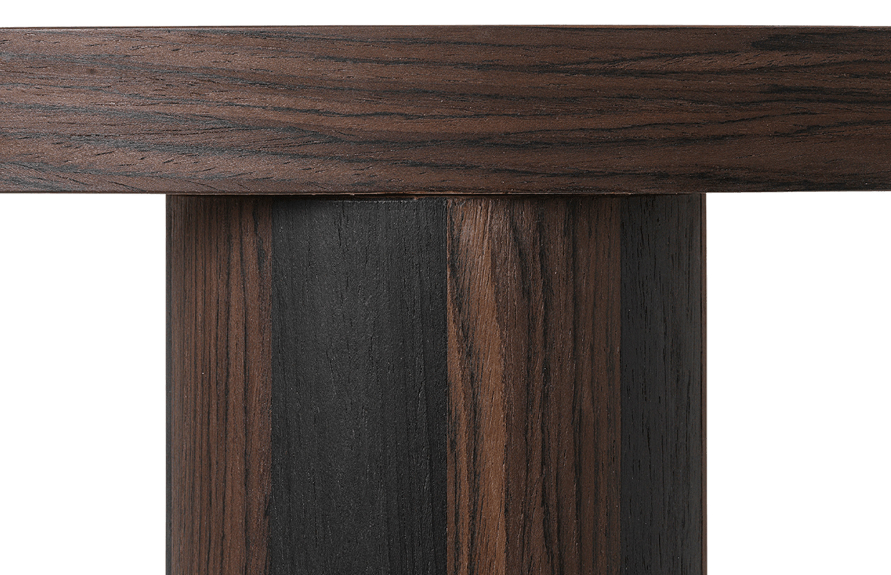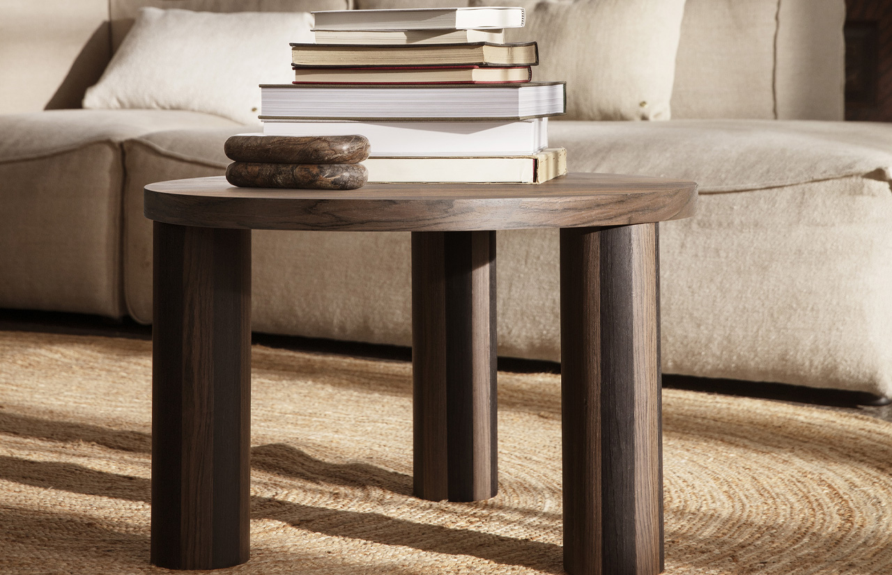 Inspired by brutalist architecture, the POST table impresses with its emotional and expressive design. The round tabletop, adorned with elegant marquetry, is supported by three substantial, cylindrical legs. The minimalist construction highlights fine design details: a contrast of proportions and the natural essence of the wood. A variety of size compositions help to create a striking interior relief. A responsible choice, marked with the "RESPONSIBLE" label.