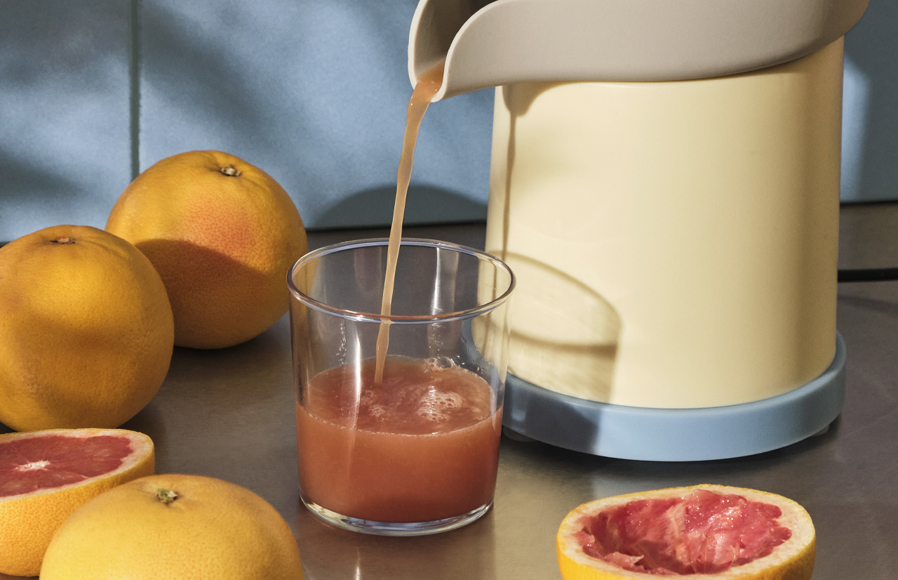 George Sowden's distinctive collection of kitchenware is enhanced by the stylish SOWDEN JUICER. Easy to operate and highly functional, this juicer efficiently extracts pulp-free juice from various citrus fruits. Made from durable plastic and stainless steel, it is easy to clean and maintain.