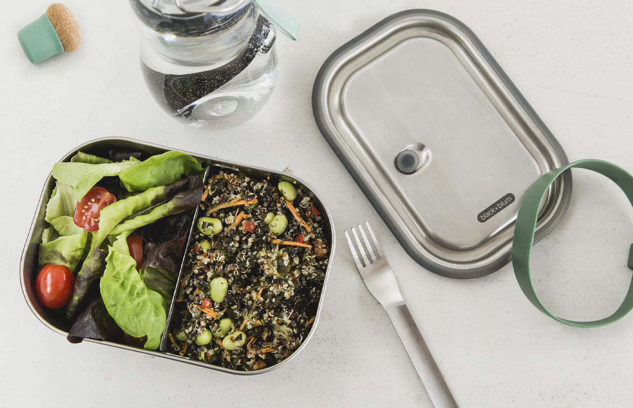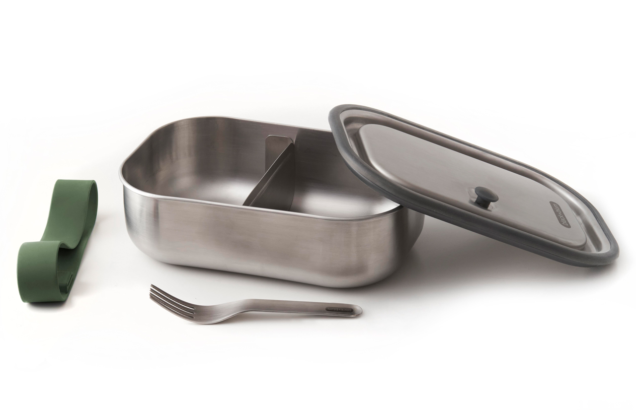 The capacious STAINLESS STEEL LUNCH BOX LARGE is an adaptable option. Its construction is quite simple, yet every component is meticulously designed. The vacuum sealing system guarantees complete airtightness, aiding separation of the dish's elements with an interior steel divider. The silicone band also holds a specially designed BLACK + BLUM steel fork. Made from robust steel, you can safely use it to warm food in the oven or chill in the freezer. This collection features silicone bands in various shades, each offering the design a unique character. These silicone bands come in different colours, each lending a distinct identity to the design. A lively touch of orange uplifts the mood and spreads positivity.