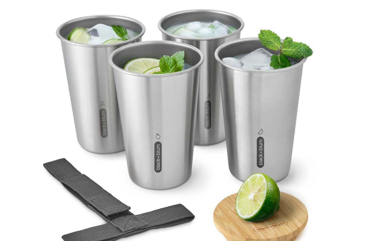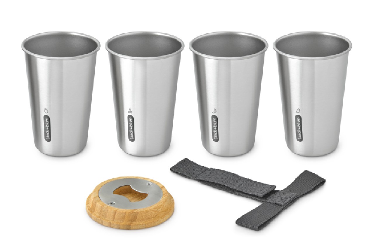 A set of four lightweight, dishwasher-safe stainless steel cups designed for life on the go. Each cup holds 500ml and is crafted from durable 0.4mm thick stainless steel. The set stacks neatly together and is topped with a bamboo lid that doubles as a cutting board - perfect for prepping limes or mint. It also features a built-in bottle opener. A tough nylon strap keeps everything securely bundled and easy to carry. Plus, each cup is individually marked so you’ll always know which one is yours.
