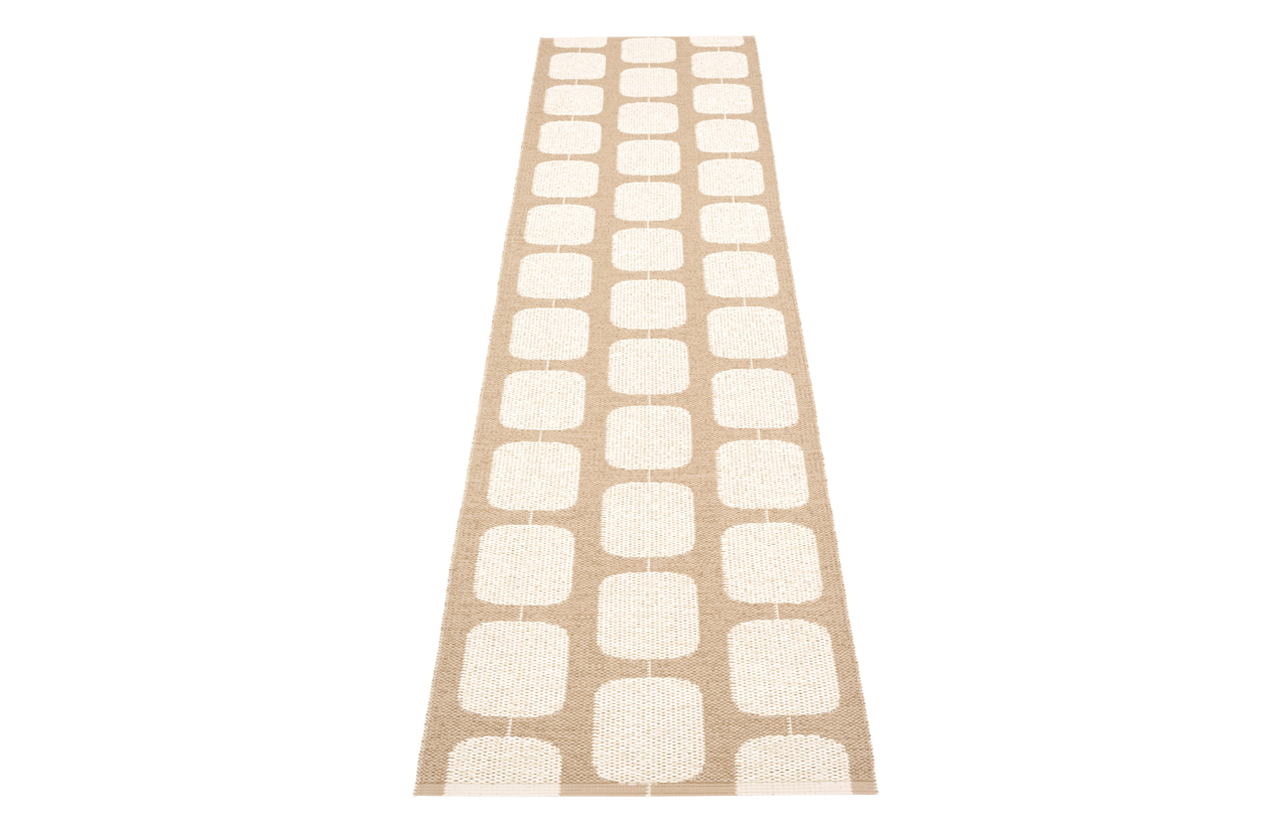 "Pappelina" rugs are manufactured from soft, non-slip, moisture, and UV-resistant Swedish plastic, ensuring they remain dust- and dirt-free. The rugs are free from heavy metals or harmful softeners and do not emit toxic gases in the event of a fire. The plastic used for "Pappelina" rugs is sourced from a Swedish company with an ISO 14001 environmental certificate. "Pappelina" plastic rugs are truly remarkable: high-quality, extremely durable, long-lasting, and low-maintenance, contributing to environmental conservation. Resistant to UV rays, these rugs dyes ensure suitability for damp areas such as pools, terraces, or kitchens.