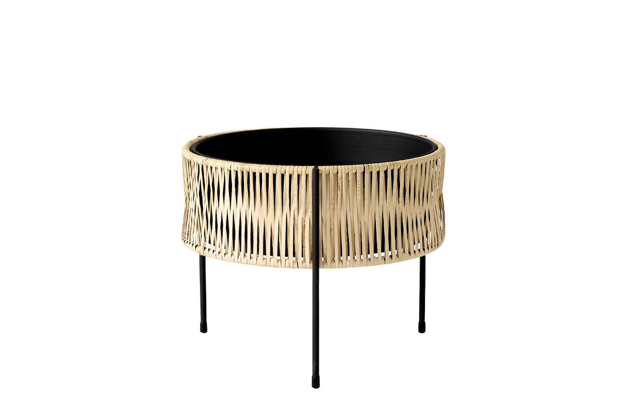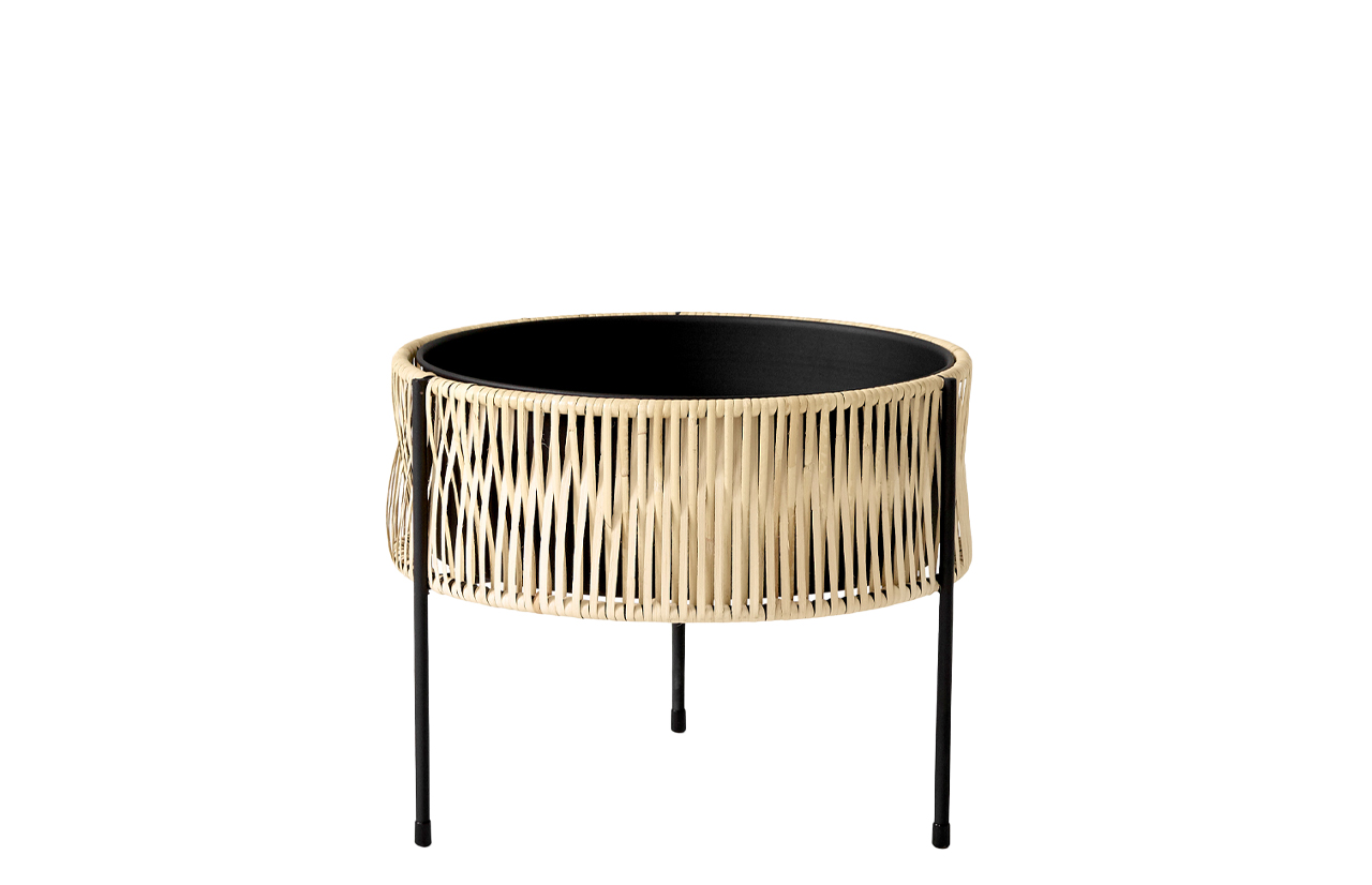 Designed in 1961, the UMANOFF PLANTER is a distinctive flower pot and pedestal, ideal for indoor and outdoor use. Rattan offers a practical yet refined appearance, beautifully contrasting with elegant black steel legs. Available in three different sizes and heights. The UMANOFF collection showcases a retrospective of the American designer Arthur Umanoff (1923–1985). While not widely known, Arthur Umanoff is highly regarded by collectors as a pioneer and influencer of American mid-century style. Simplistic and pure forms, the use of striking materials, and functionality are the main features of this style, which remain relevant today.